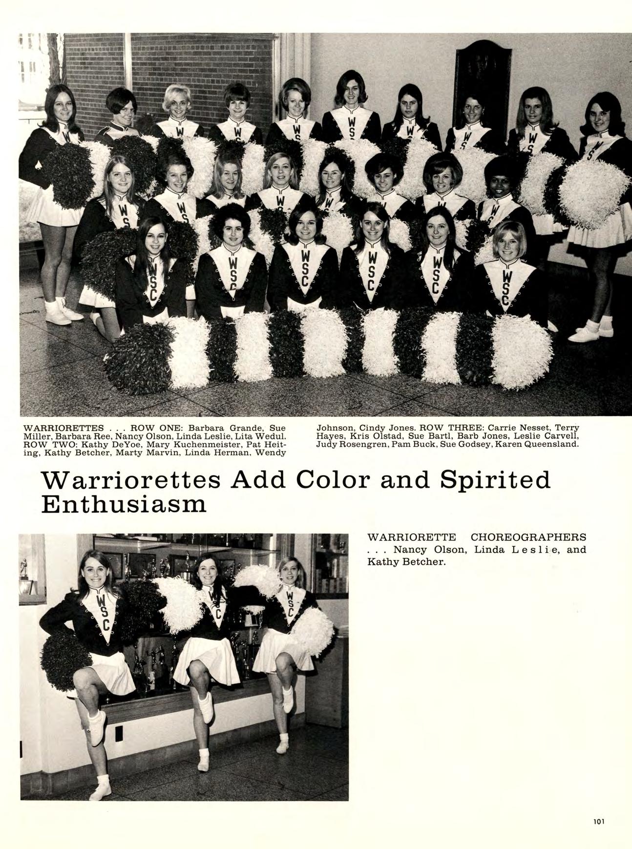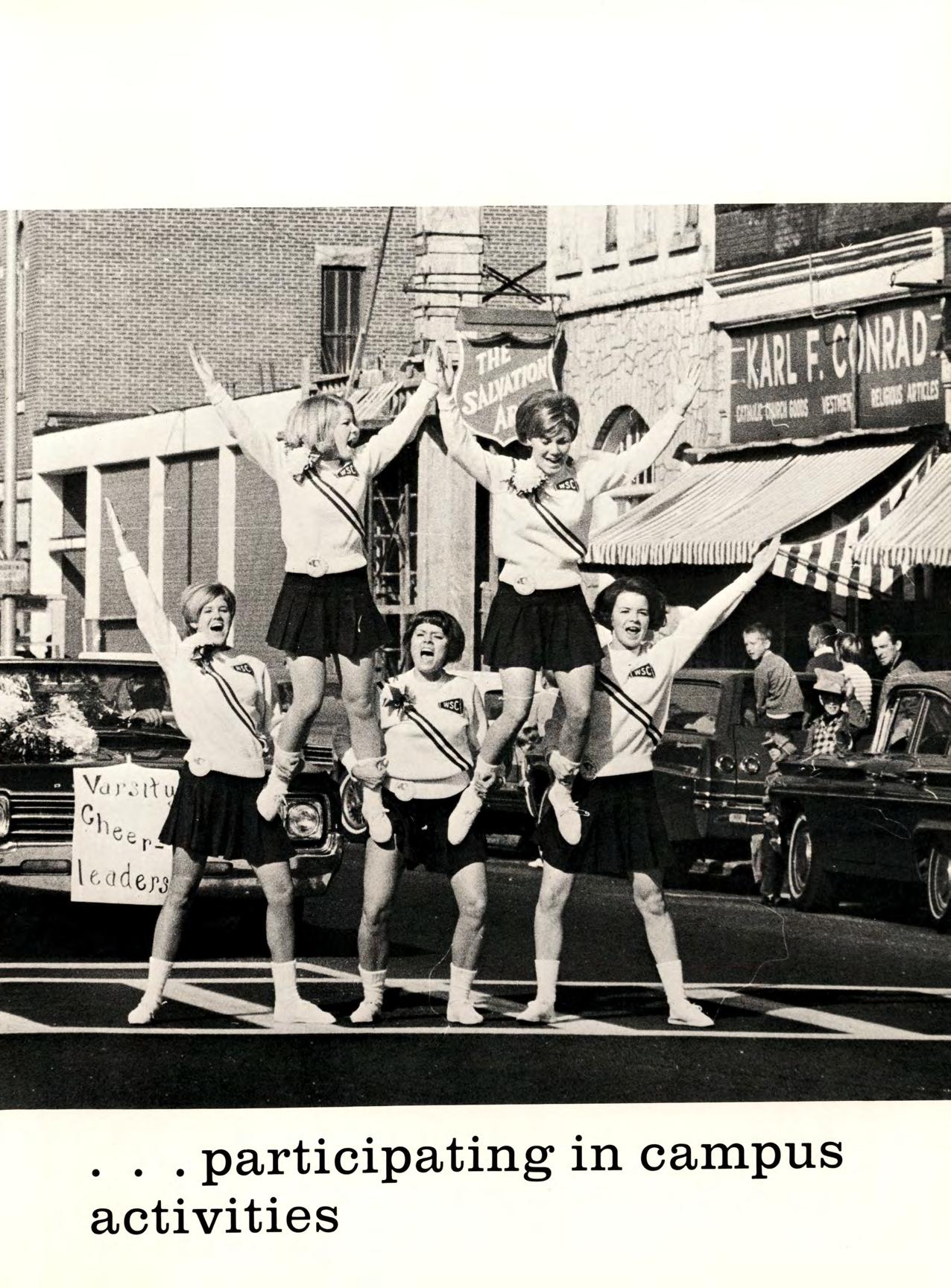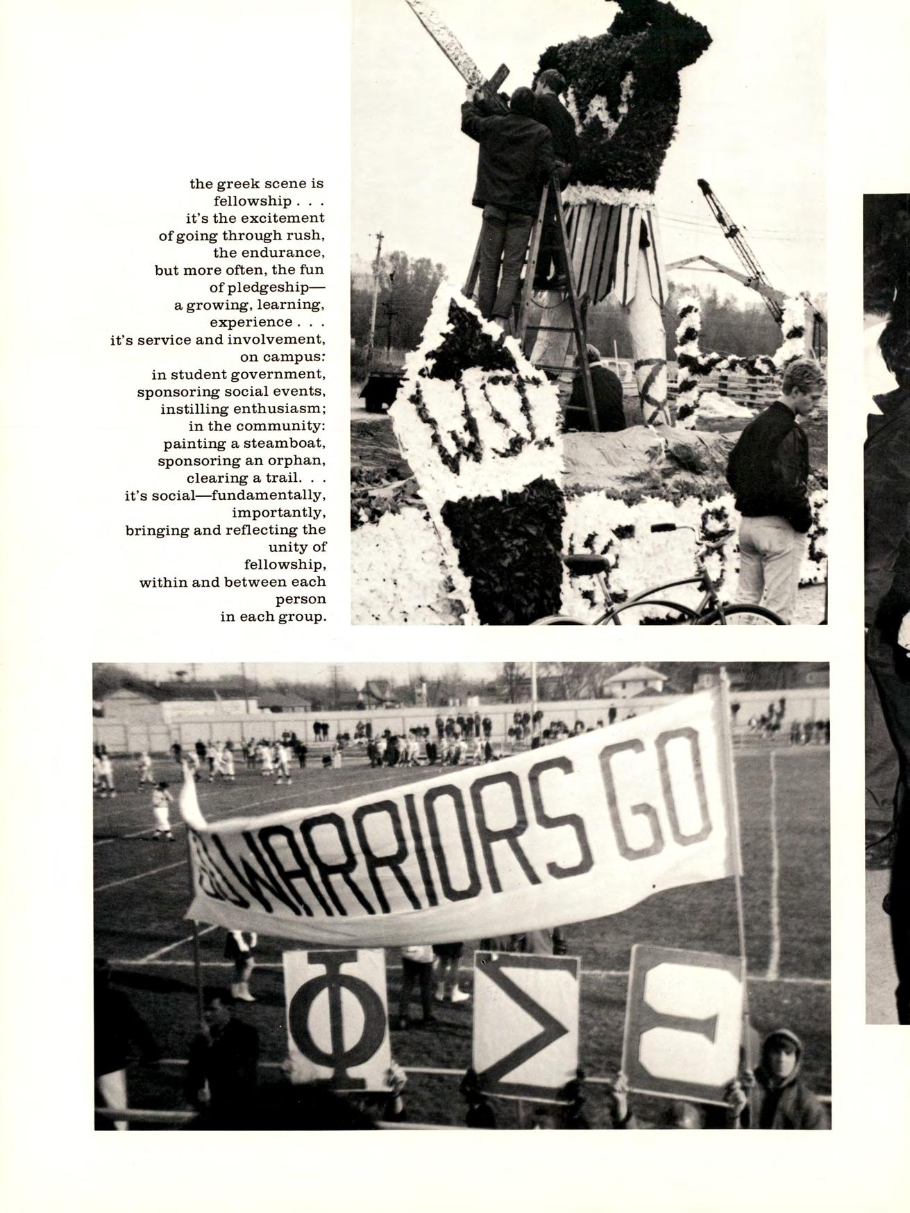 LEFT: The Prentiss dorm display accuratelypredicts that the Warriors will have a “better idea”. BELOW LEFT: Homecoming crowd enjoy themselves at the dance in the Student Union. BELOW: Intent football fans concentrate on proceedings as a WSC cheerleader instills spirit.
