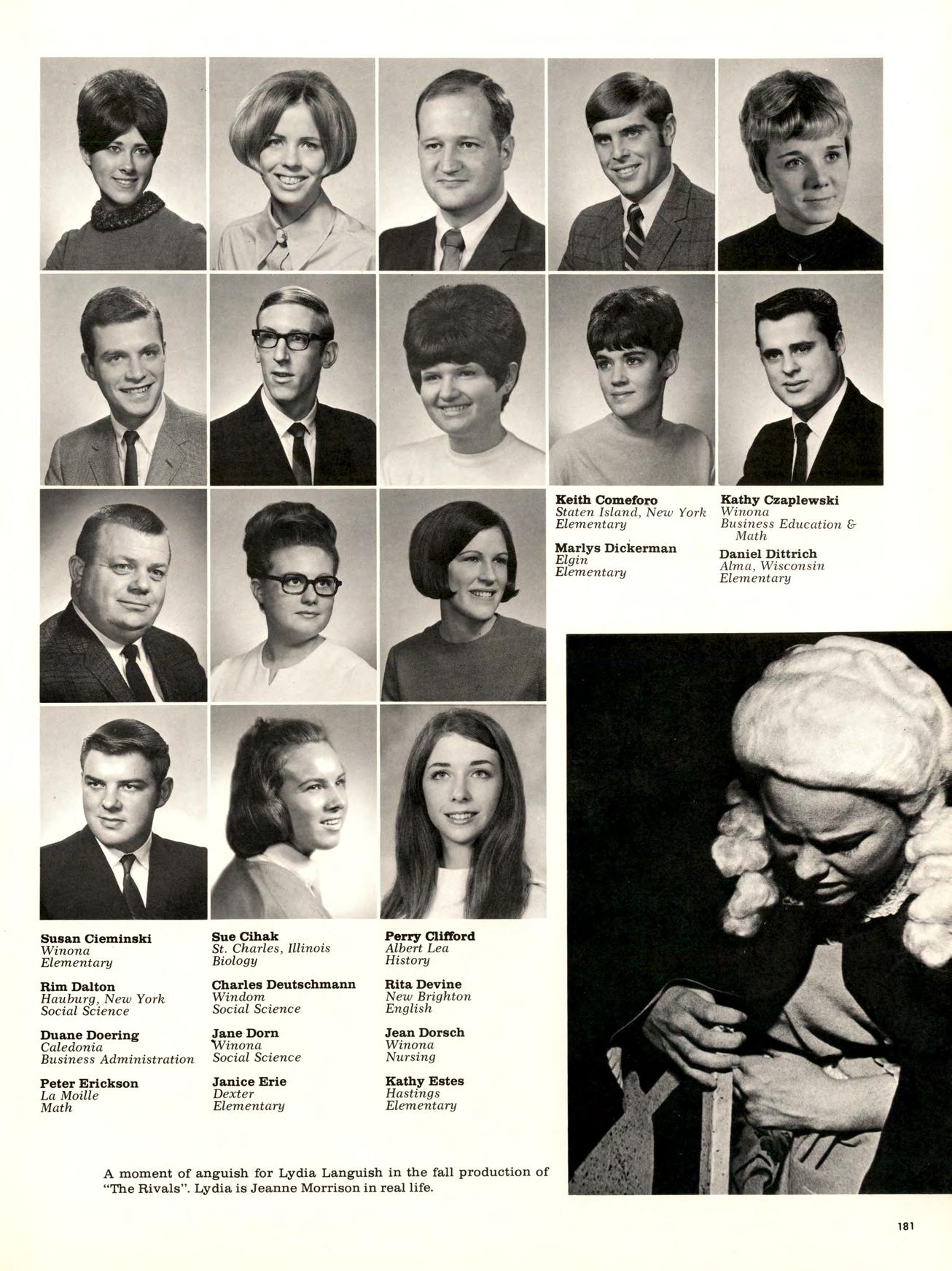 Winona State drew from its own resources of talent also. “Brigadoon”, an excellently done musical, was presented in the Spring and throughout the year there were plays, art shows, and lectures. The plays presented were “The Rivals” and “Playboy ofthe Western World”.