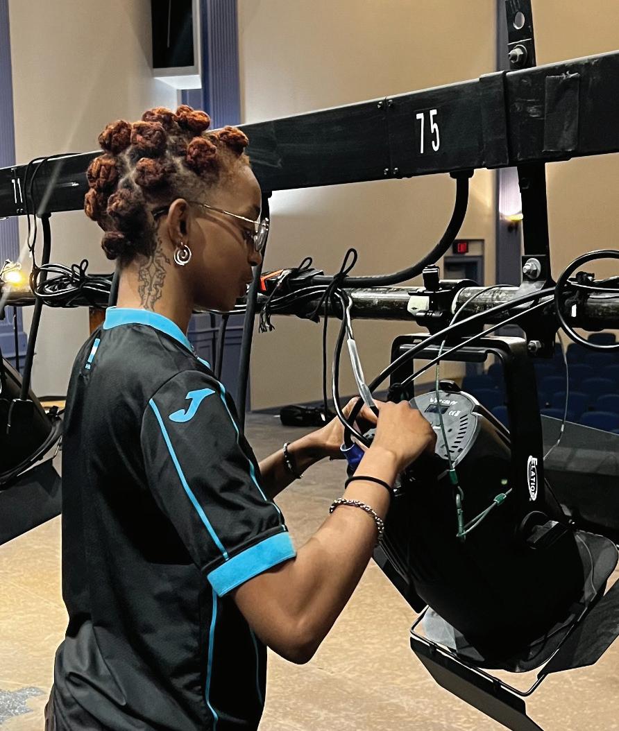 Castro gained valuable leadership and technical experience through an Applied Learning role as Head Electrician and Student Lighting Supervisor with the College of Fine Arts. She translated lighting designs into fully realized stage productions while mentoring practicum students and coordinating fast-paced production schedules. The role strengthened her communication, problem-solving, time management, and team leadership skills, while also providing financial support that helped her manage living expenses. A highlight of her experience was successfully advocating for upgraded lighting equipment, improving resources and retention for future students.