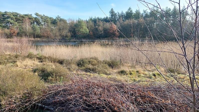 Na een korte pauze beginnen we aan de tweede lus, naar het Zwartven. De zon is gaan schijnen en dat voelt prettig aan. Weer veel zandwegen, maar nu redelijk vlak. We passeren het ven, dat er mooi bij ligt. Dan weer zandwegen en lopen het grensgebied in. We komen zelfs nog even in België, maar niet langs een grenspaal. We komen op een fietspad en zien wat verder de grenspaal staan, maar we gaan het Nederlandse bos in. Na ruim 8.5 km komen we weer bij de Scoutinglocatie en genieten van de warme snert en kerststol.
