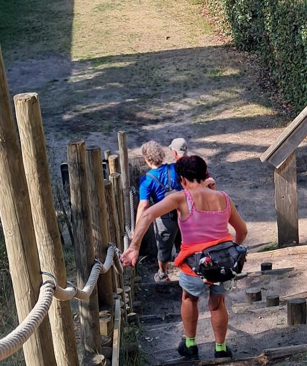 Bij de Sas 4-toren wacht ons een stevige trap naar beneden. Of heel dapper met de Schuif-af. Enkele waaghalzen willen deze wel eens proberen. En ….roetsj naar beneden.