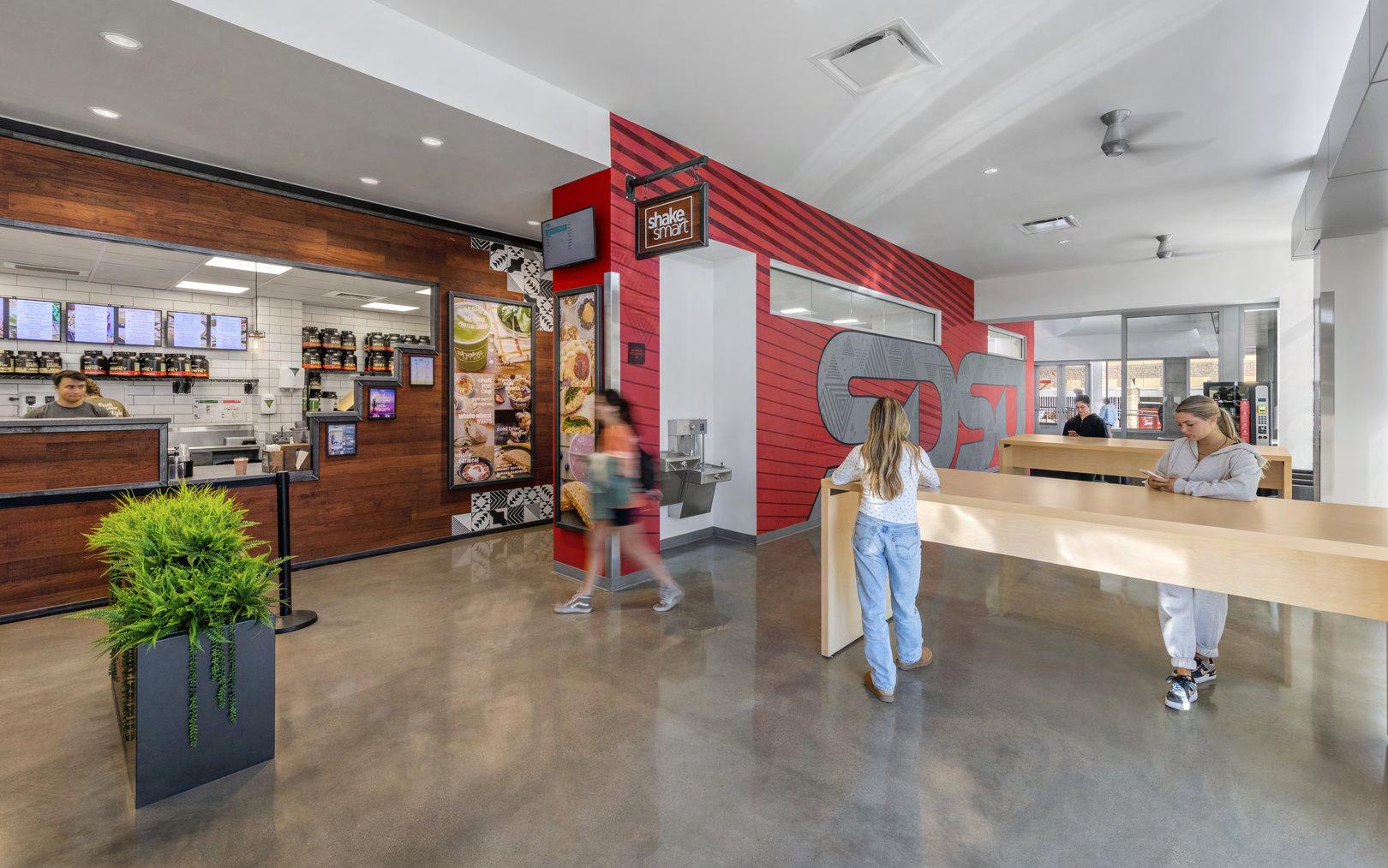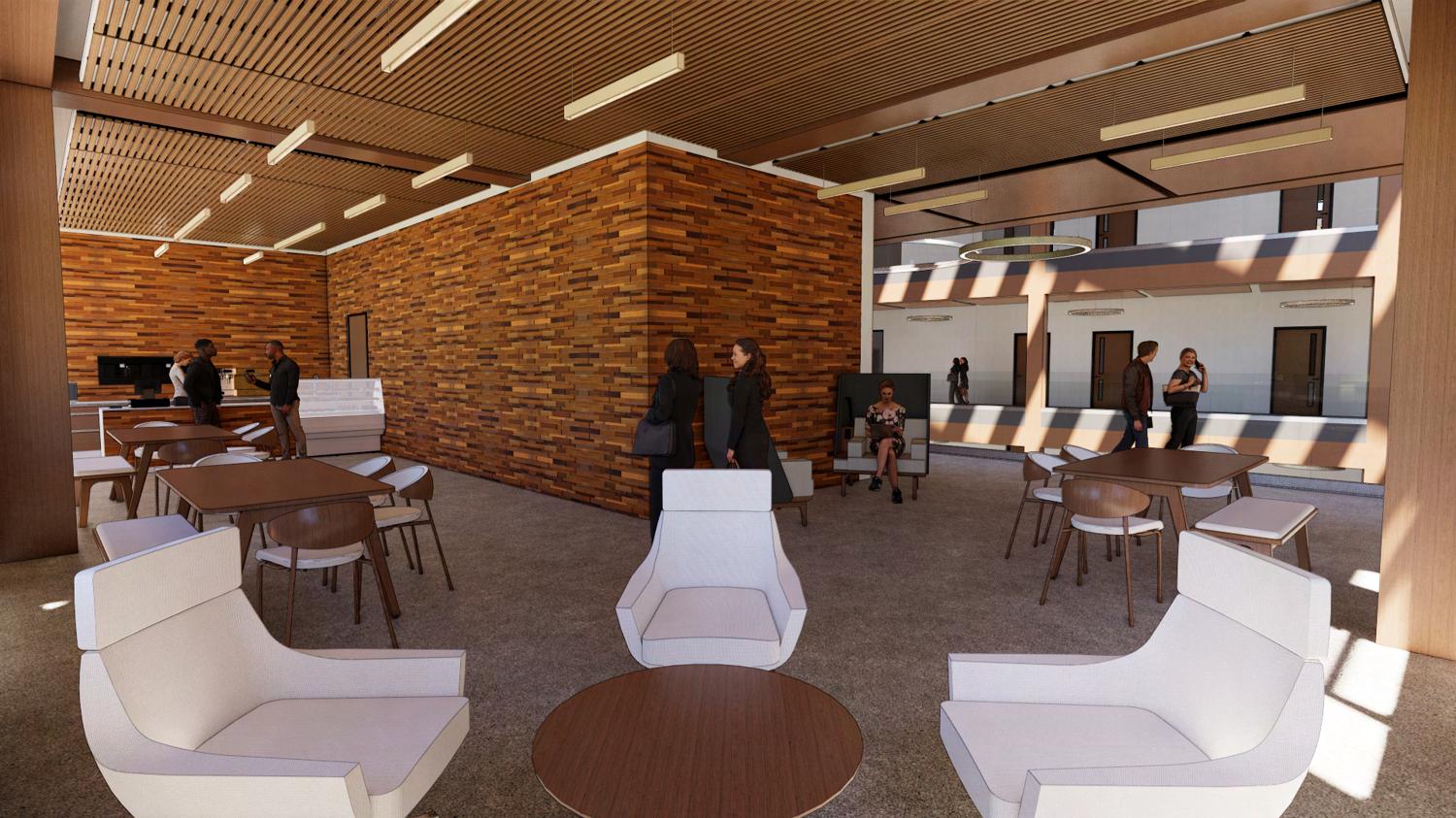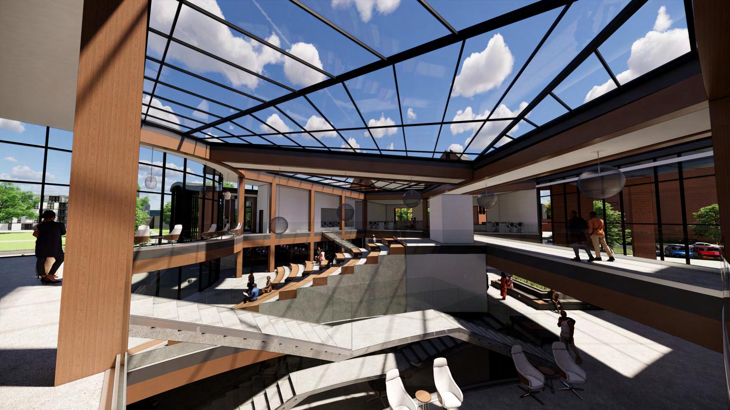 LOOKING TOWARDS COLLABORATION SPACES & STADIUM STEPS AT MAIN ATRIUM