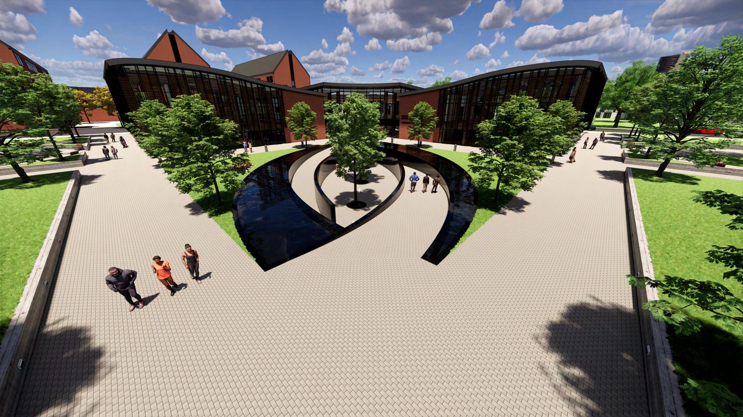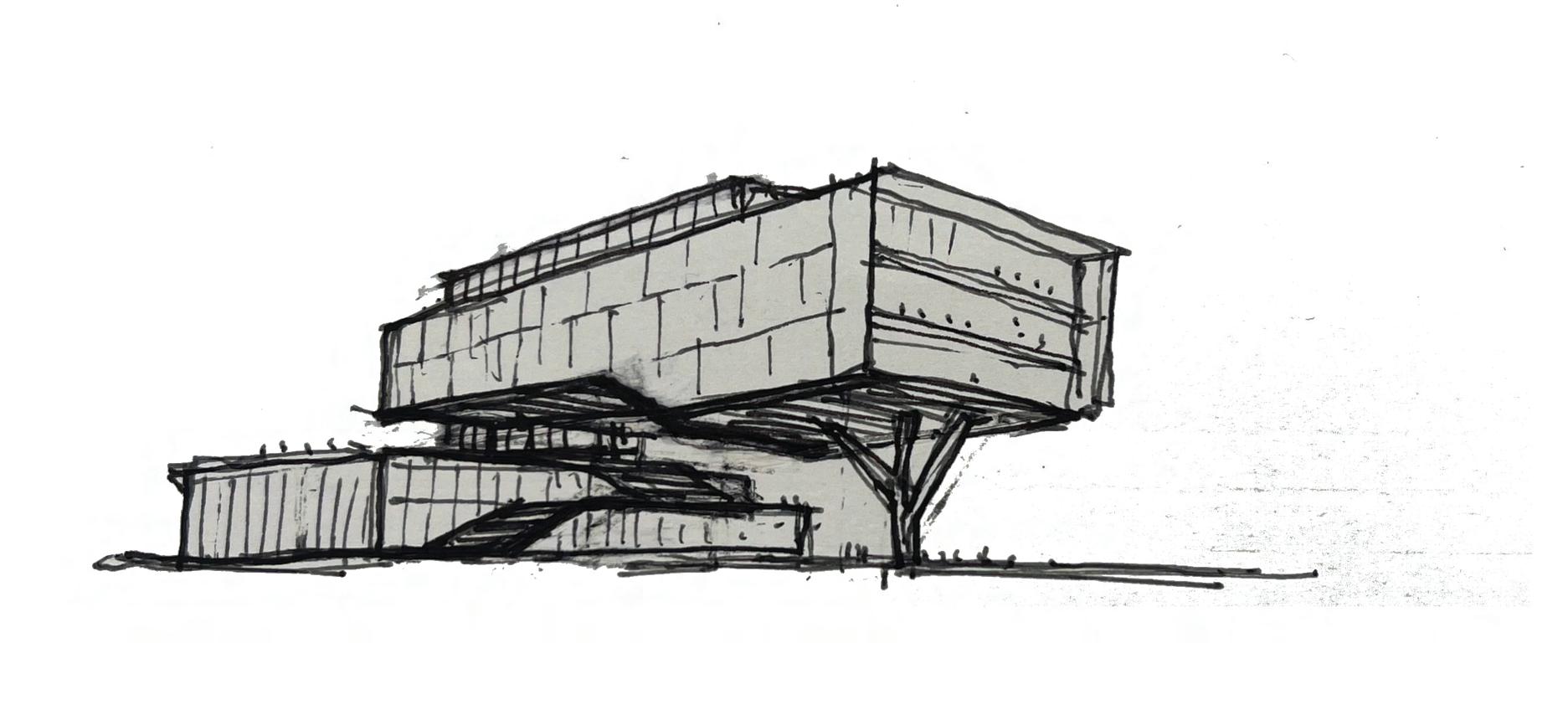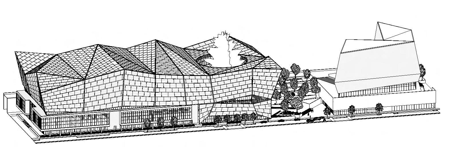 Situated on the eastern edge of the University of Oregon campus, the Black Cultural was meant to serve as the new home of the Black Student coalitions at the university, as well as to serve as a cultural and communal gathering hub for the greater black Eugene residents. Housed inside the buildings included a two-level library, gallery space, function hall, a 200-seat lecture hall, social lounge space, and sacred gathering/monument space located on the exterior of the building. The way in which I chose to tackle the wide ranging list of program requirements for this studio was by making the buildings’ program be split into two wings, connected by unifying central area that would house a large share of the more casual social gathering areas. Both of the wings branching off the central hub are sized and shaped in the same way as a way to represent the equal importance that each wing represents. It is to symbolize the equal importance of academic education as well as cultural education. My favorite part of this project was my sacred gather space that I located just outside the central atrium area of the building. The space is composed of two symetrical curving ramps down into a lowered gathering area, with both ramps flanked by zero-edge waterful walls flowing over gloss black granite walls etched with meaningful quotes by famous black American figures and black alumni of the University of Oregon.