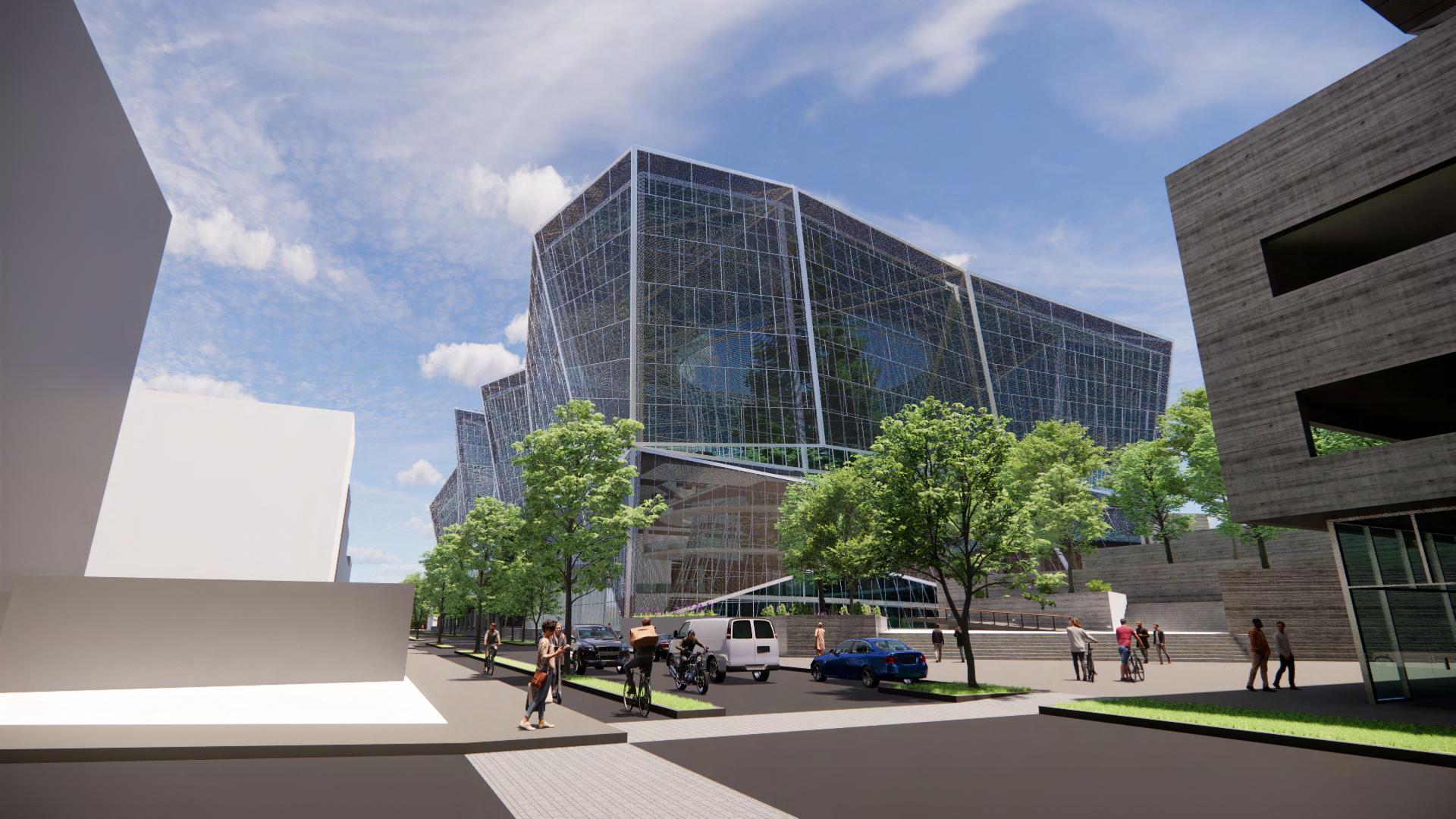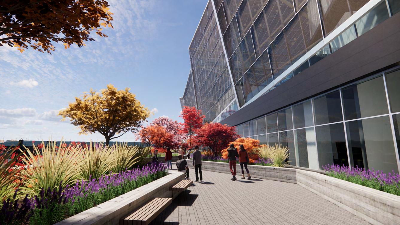 TRIPLE-PANED CURTAIN WALLS ARE USED EXTENSIVELY THROUGHOUT THE COMPLEX AS A WAY TO HELP MAINTAIN A HIGHLY-EFFICIENT BUILDING, WHILE AT THE SAME TIME ALLOWING THE COMPLEX TO BE AS VISUALLY PLEASING AS POSSIBLE TOO. BY USING TRIPLE-PANED PANELS, IT HEAVILY REDUCES THE POTENTIAL OF AIR LEAKAGES THROUGHOUT THE COMPLEX