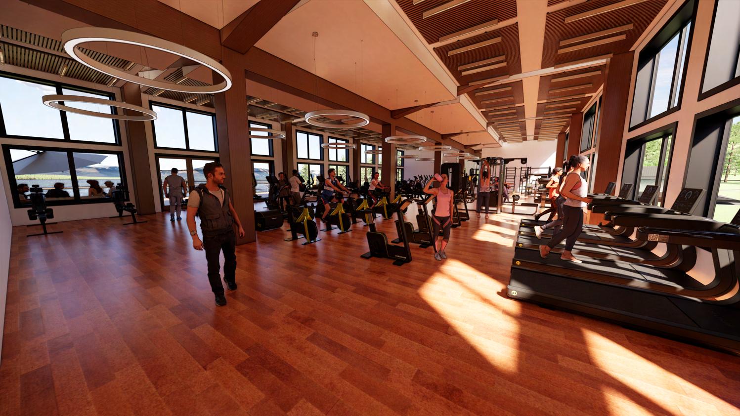 FITNESS & TRAINING AREA LOOKING OUT TOWARDS THE LAKE