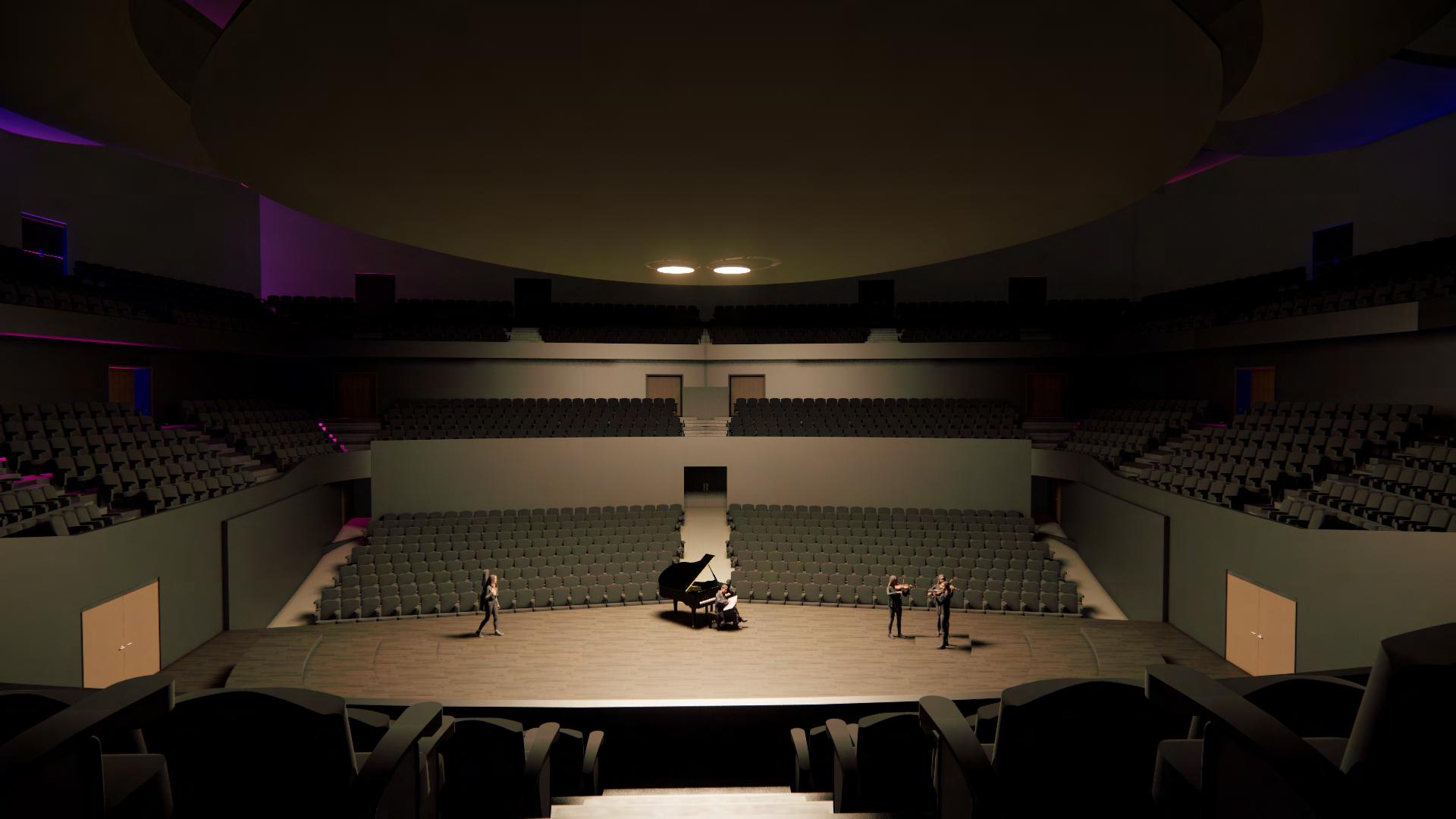 THE PERFORATED PANELS ALLOW FOR WELL-DISTRIBUTED DAYLIGHT TO COME INTO THE SPACE WHILE AT THE SAME TIME LIMITING THE AMOUNT OF LIGHT THAT COMES INTO THE SPACE. ANOTHER KEY REASON AS TO WHY THE OUTTER SHELLS PANELLING IS PERFORATED IS TO ALSO ALLOW FOR THE PATRONS AND VISTORS TO THE SYMPHONY HALLS TO HAVE SWEEPING VIEWS OF DOWNTOWN PORTLAND THAT SITS DIRECTLY ACROSS FROM THE COMPLEX ON THE OTHER SIDE OF THE WILLAMETTE RIVER.