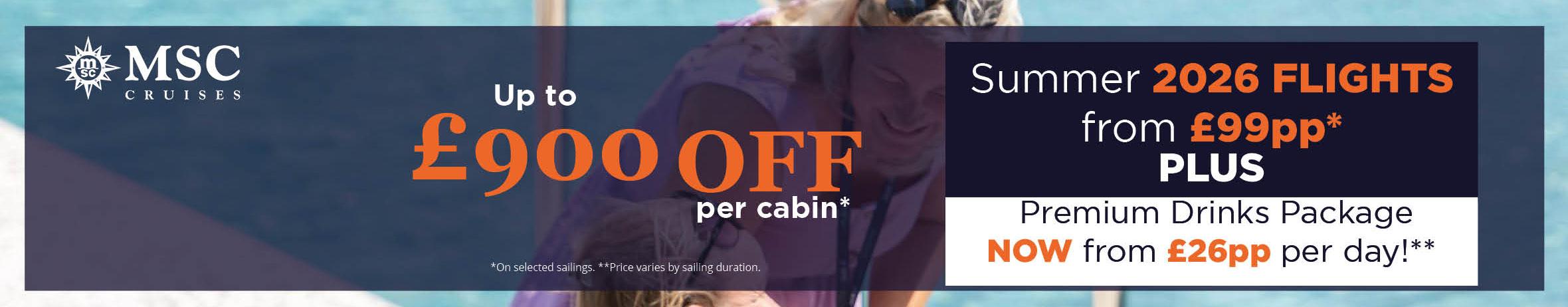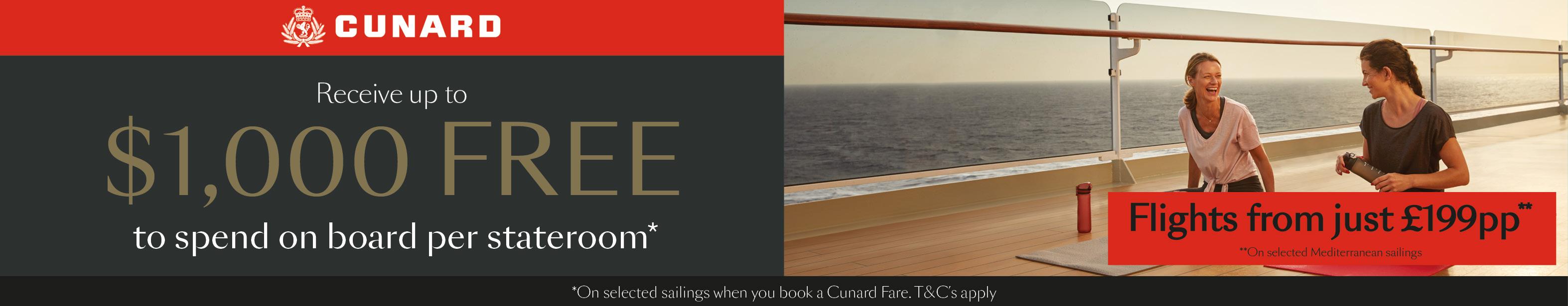 *Includes return flights and overseas transfers Prices based on Select Fare, includes up to £470 FREE to spend on board per cabin