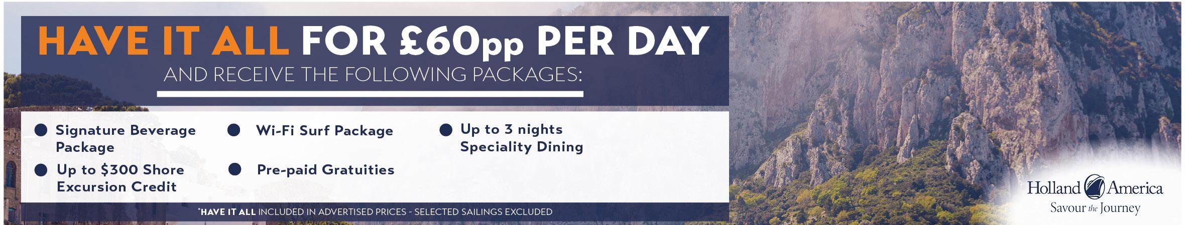 from £49pp per day and receive Drinks, Wi-Fi and Speciality Dining