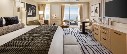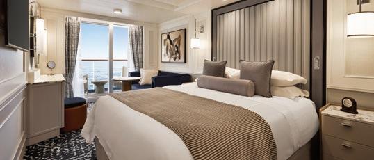 These sleekly redefined 216-square-foot staterooms feature Tranquility Beds, re-inspired verandas and the luxury of exclusive Concierge Level amenities and privileges.