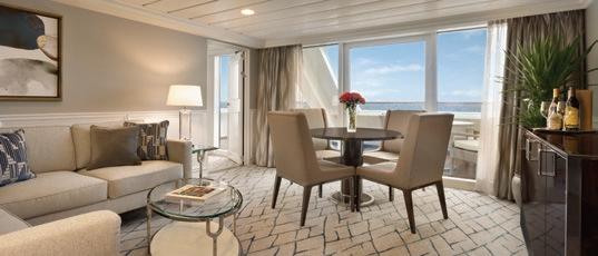 Featuring 174 square feet of refined elegance and idyllic solace, these freshly reimagined staterooms offer stylish new furnishings and a restful palette.