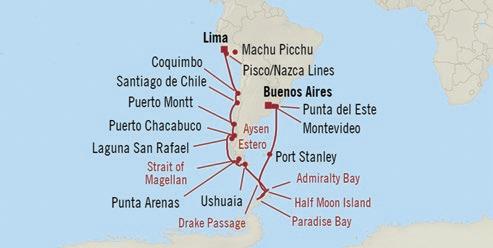 • Other fjords will also be viewed. Specific fjords viewed are subject to change. Machu Picchu Land Programme available from Lima. Pre-cruise overnight hotel stay required (not included). UPGRADE SALE WAS WITH FREE UPGRADE Concierge Level Veranda from £9,489