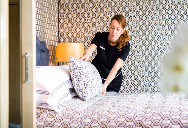 • Elegant and well-appointed staterooms and suites with the finest linens, towels and Savoir® of England beds