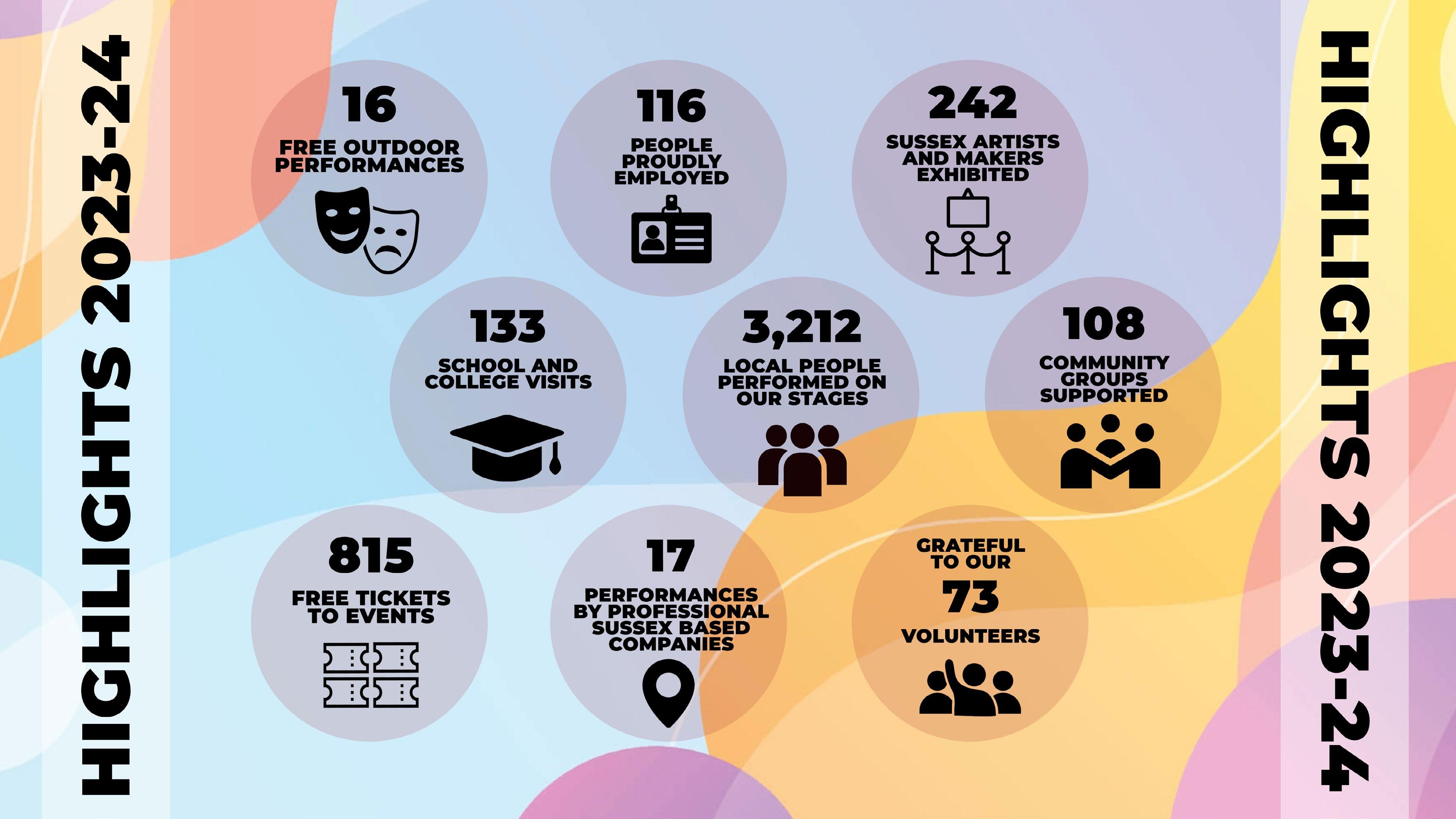 excluded by removing barriers to entry. We have continued our programme of free outdoor summer events, provided 326 free pantomime tickets through the Food Bank, Mind and Safer in Sussex, participated in the school holiday HAF project and developed our winter Warm Spaces offer.