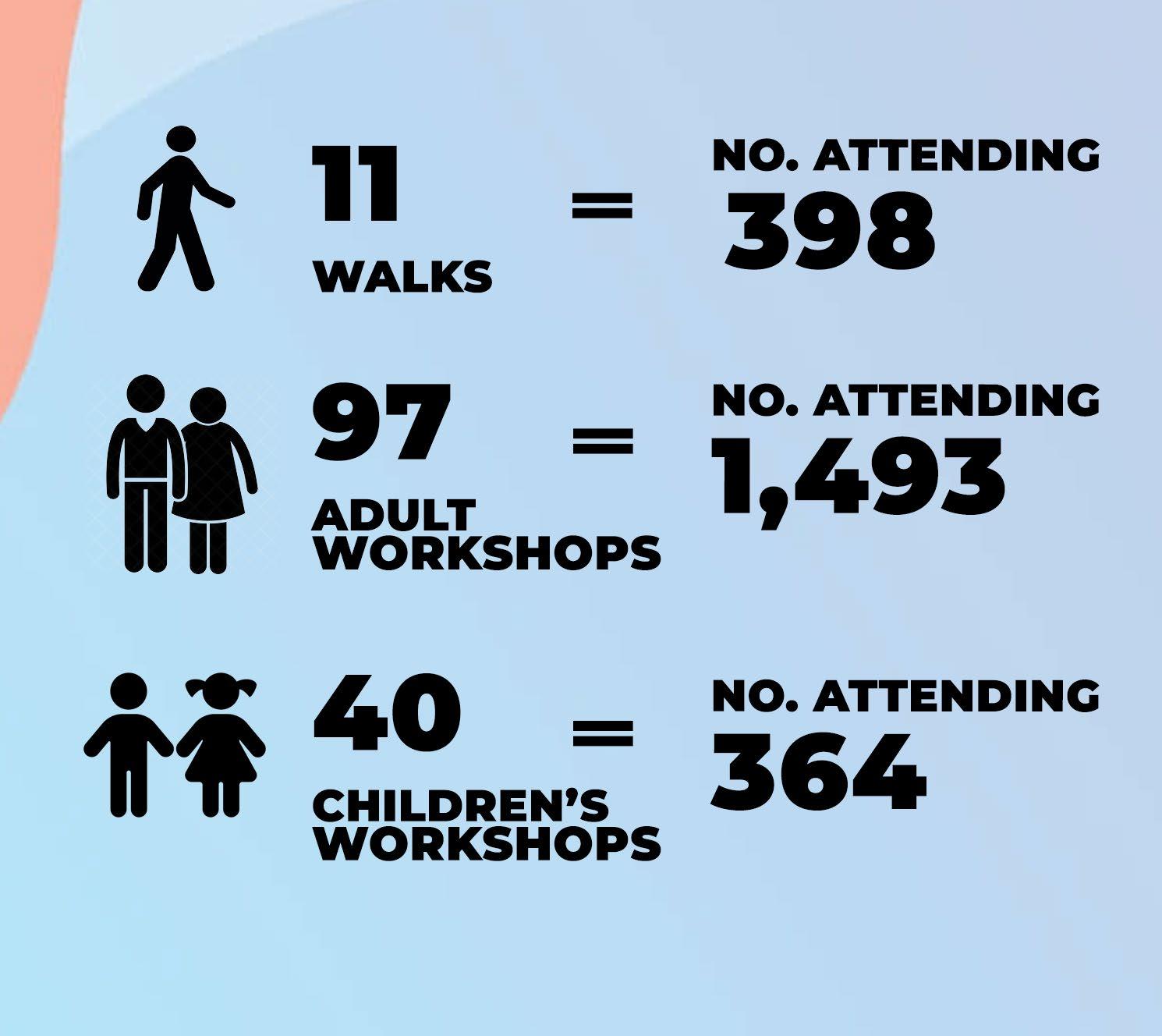 WTM held 137 workshops/classes during the year attended by 1,857 people and covering a very broad range of activities including: dressmaking, still life drawing, textile printing, song writing, garden design, classical Indian dance, Argentine tango, ballroom dance and numerous craft workshops for children.