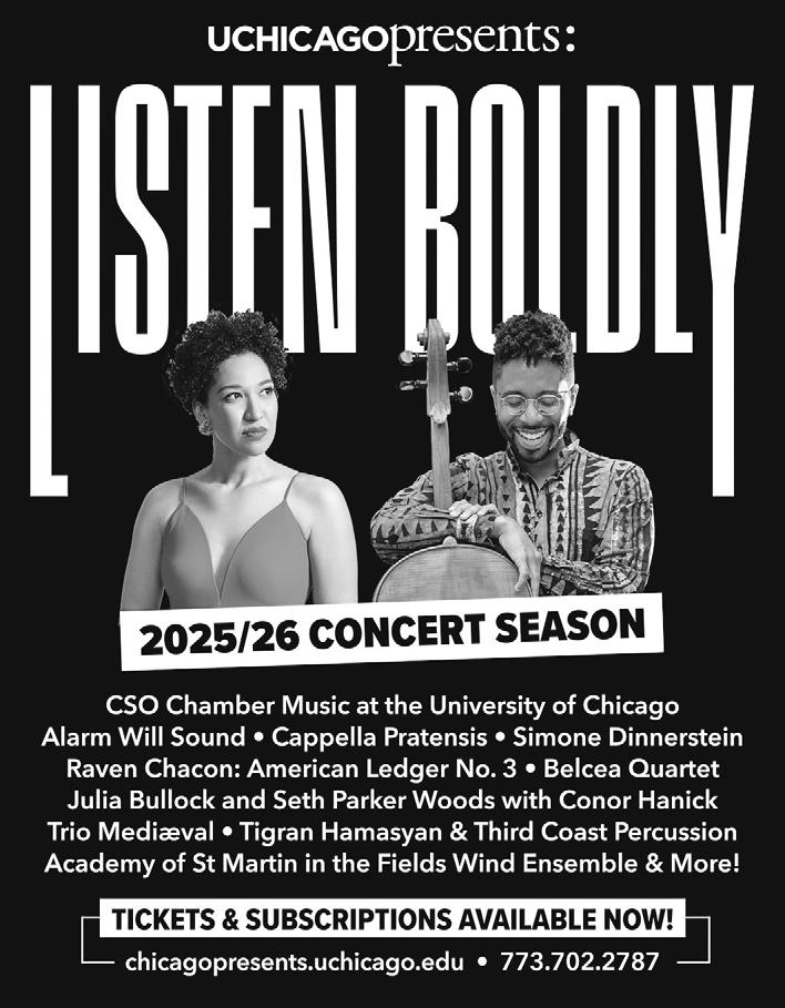 On WFMT, a new season of Live from WFMT features performances by oboist Oliver Talukder, the winner of the Cedille Records Emerging Artist Competition; the Miró Quartet; and the popular vocal group Chanticleer.