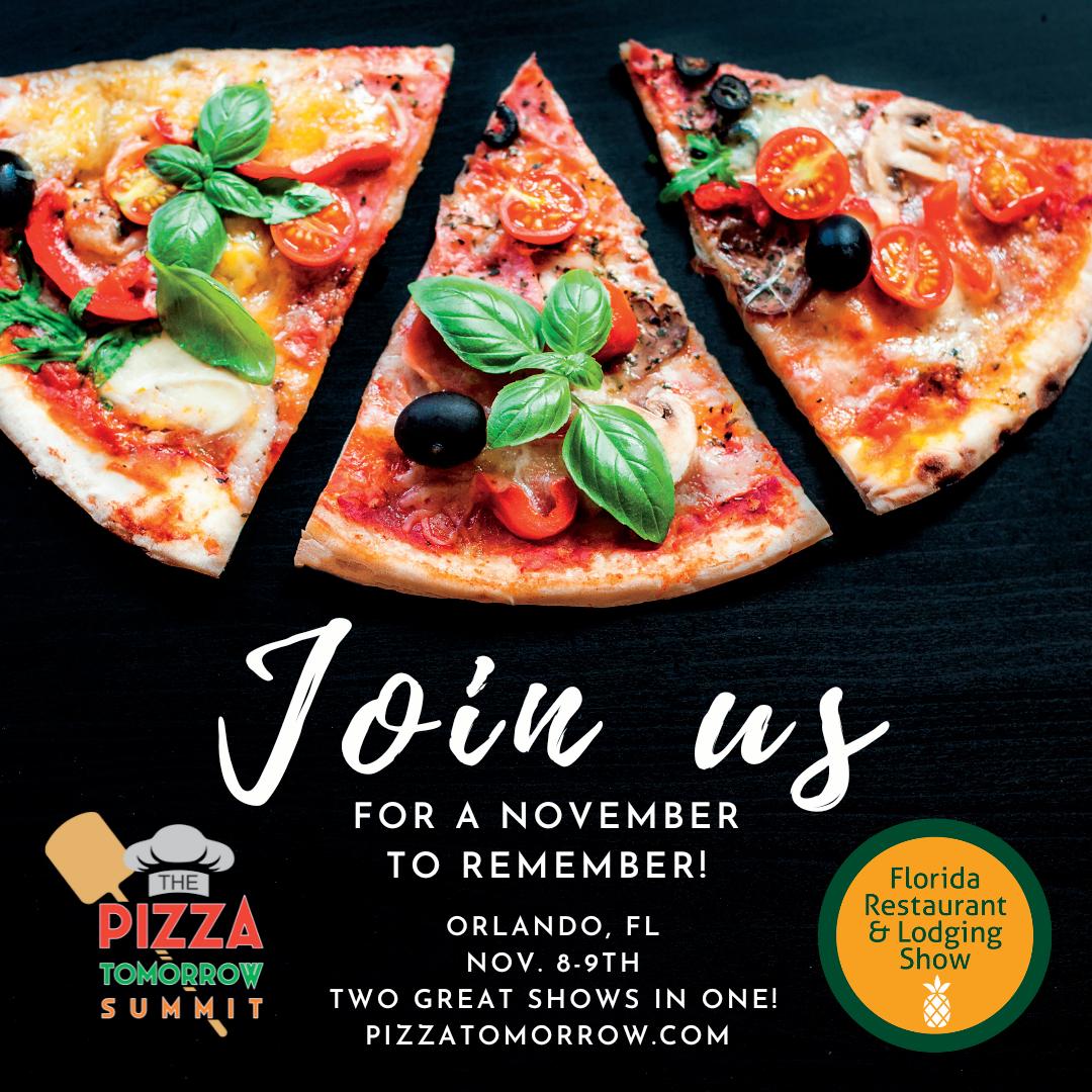 Movers and shakers of the pizza world will once again converge in Orlando, Florida, for the Pizza Tomorrow Summit, taking place in the Orange County Convention Center. Explore hundreds of exhibitors showcasing a wide range of products as well as a robust conference program, live cooking demos and a U.S. Pizza Team competition. The Florida Restaurant & Lodging Show will be co-located with this year’s event, making it bigger and better than ever.