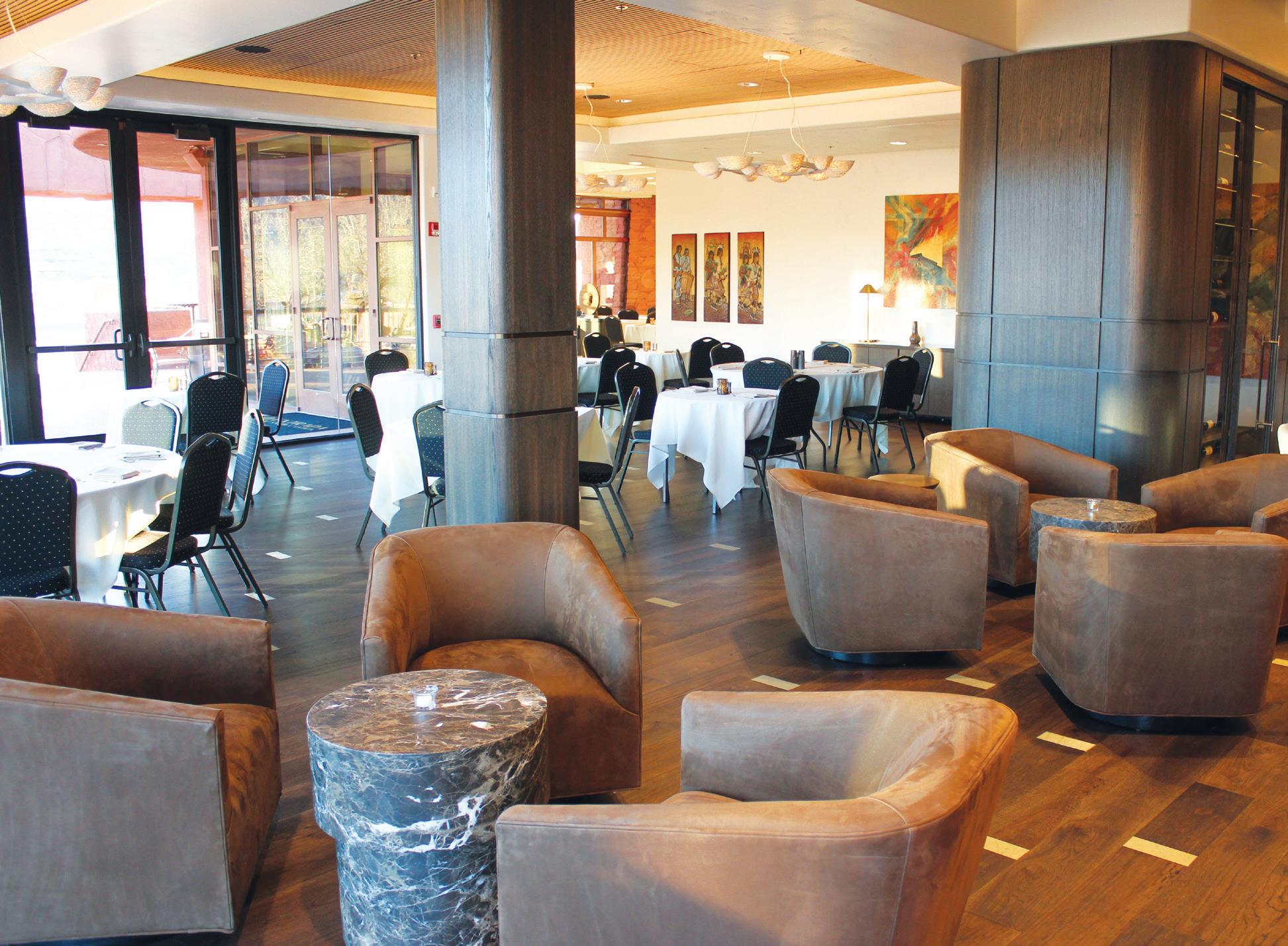 BCC’s Five Farms property (above) will host the Chef to Chef reception, featuring its wine room (right), which showcases a table crafted from a fallen elm tree that once stood on the property and an extensive collection of fine wines central to the club’s dining program.