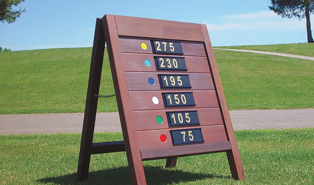 Our signs are a great way to help golfers judge their strike distances. Choose from our various style options—including those with clocks.