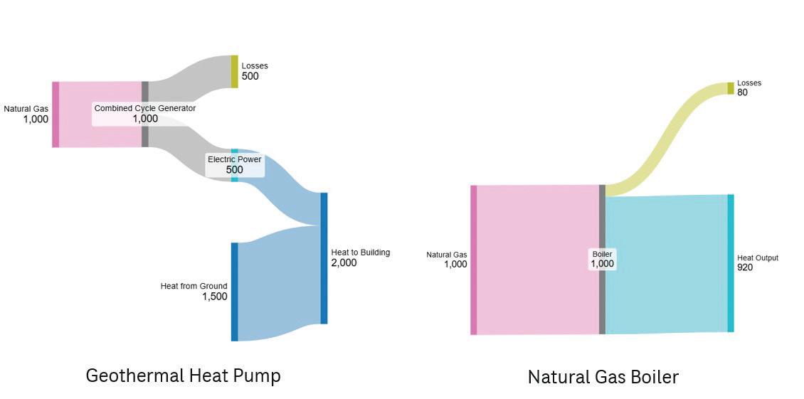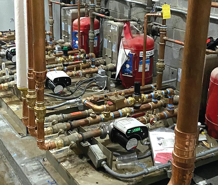 low-temperature heating hot water networks, which integrate more easily with low-grade thermal sources—like geo-exchange, sewer thermal and waste heat— using heat pumps or heat-recovery chillers at the core of the district energy plant.