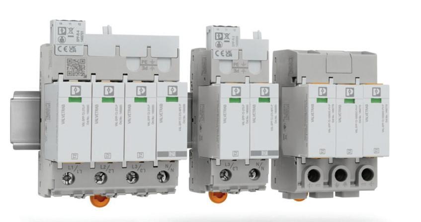 Phoenix Contact introduced Phoenix Valvetrab Safe Protection Plus (VAL-SPP) surge protective devices with miswiring and touch protection. The SPDs have a specified tightening torque of 3 Newton-meters. The family includes the VAL-US-SPP for North American power supply systems, aligned with applicable NEMA requirements. The North American version is UL Listed and complies with NFPA 79, which includes requirements for surge protection on safety circuits. The devices have modular, plug-in remote signaling. Phoenix Contact, www.phoenixcontact.com