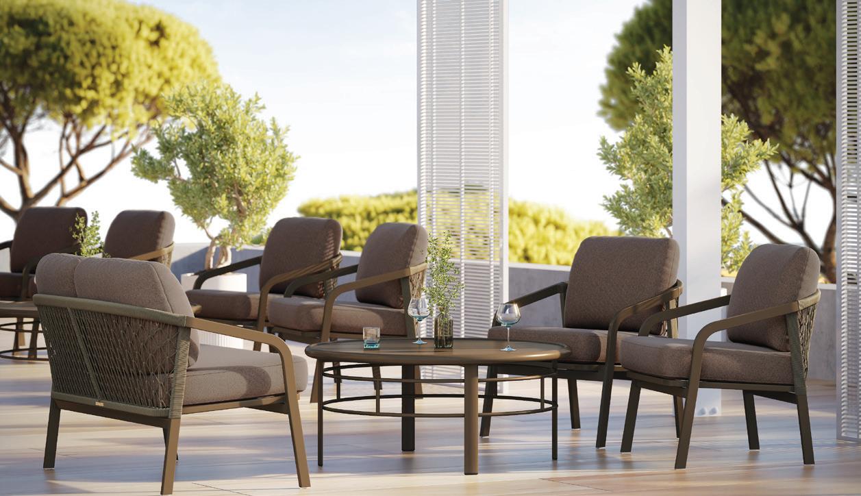 ▶ Generously proportioned seating accompanied by plush cushions