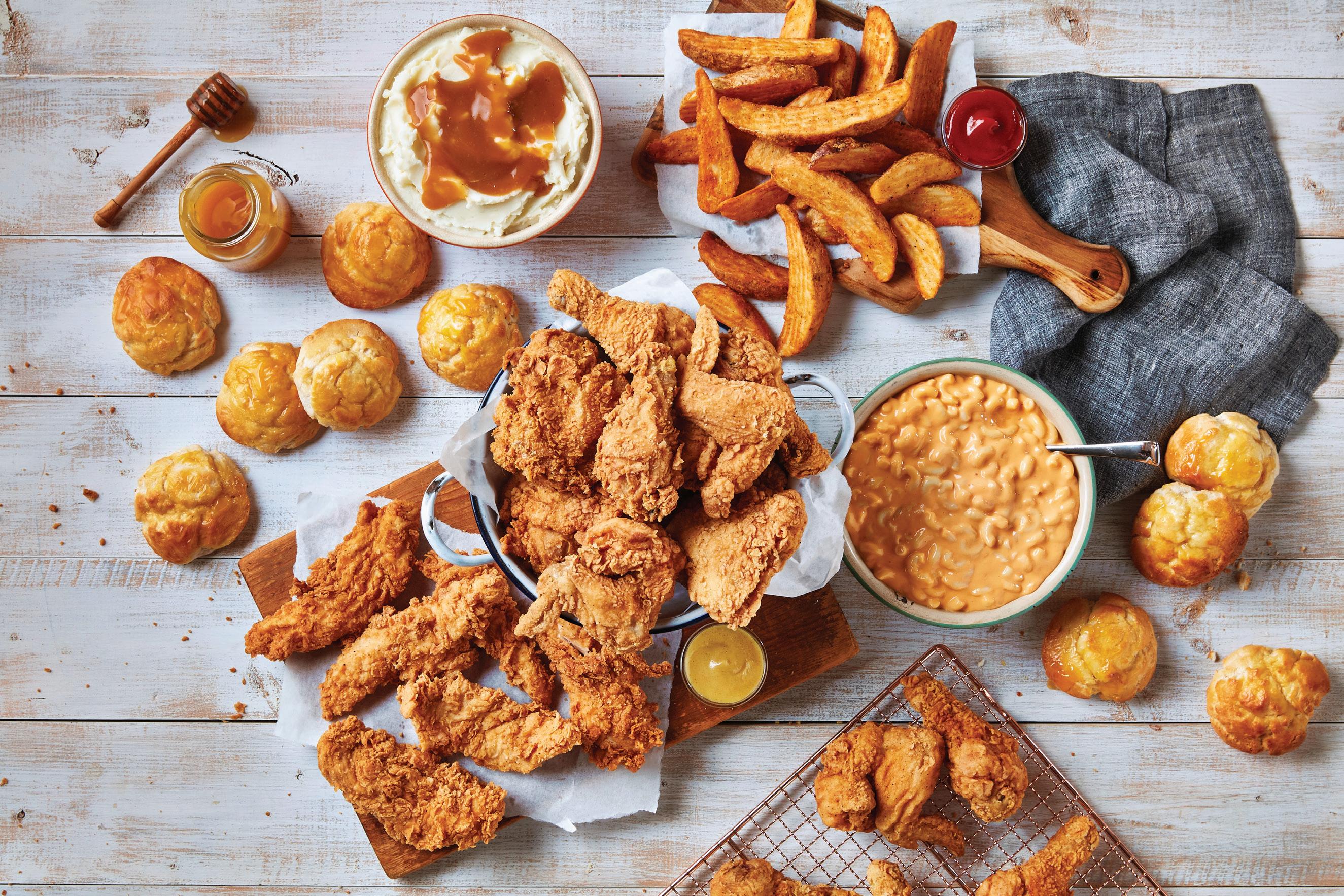 Customers can choose from a three-piece all the way to a 25-piece tender meal with a biscuit, along with a Krunch Box through Krispy Krunchy Chicken. They can also choose a family meal with 12 pieces of chicken, six tenders, six biscuits and a side, or a 12-piece tender family meal.