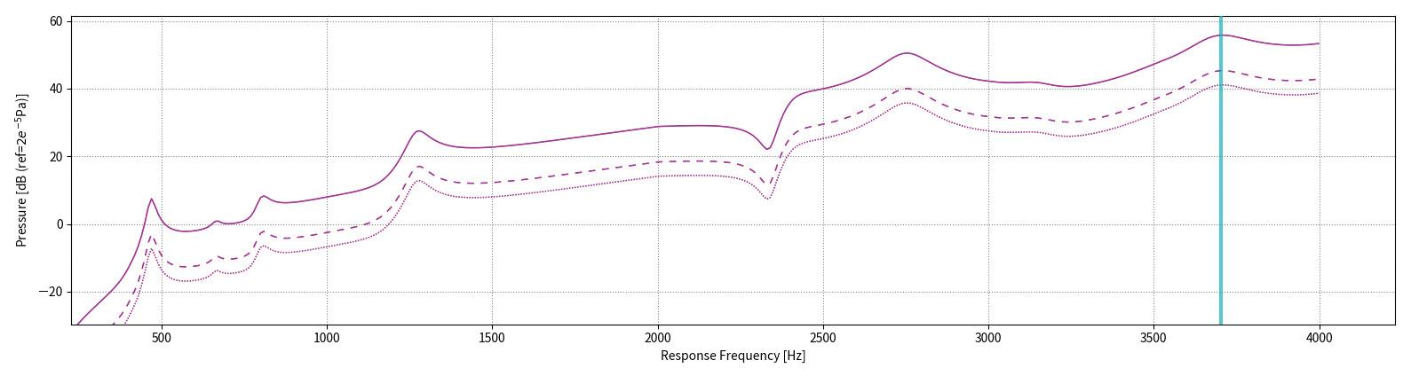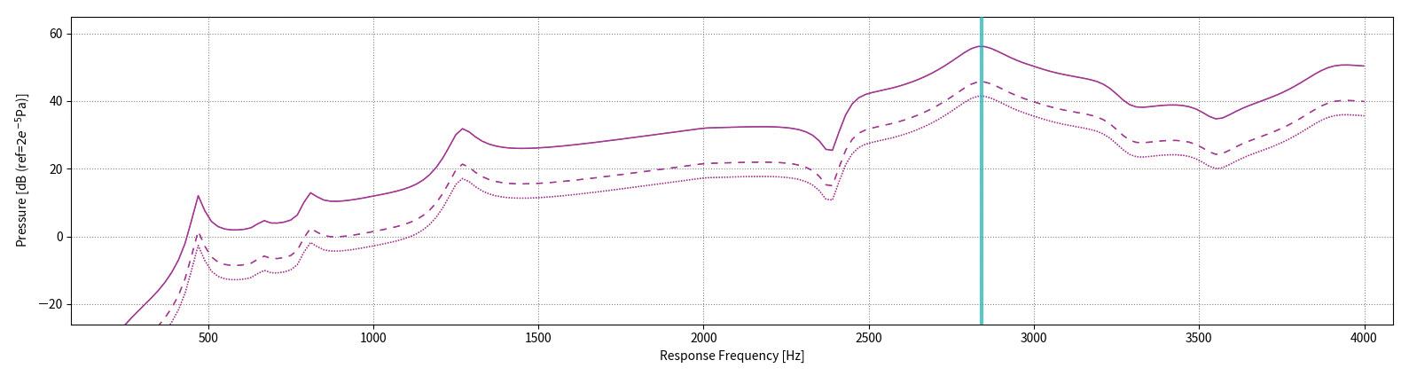 ● With a skew of X-80, Y+80 microns and a noise value of +52 dBA: Similar results were found at 80 microns and at 30 and 60 microns.