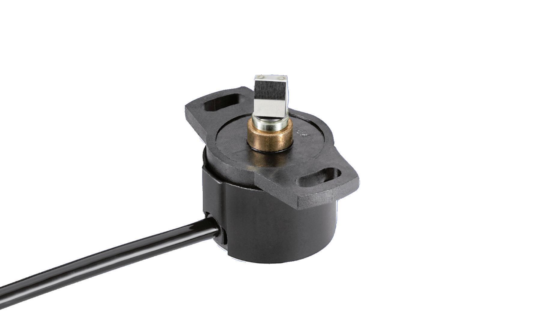 The encoder has a measuring range of 15,840° (44 turns), and measures variable information of angle, turns, speed, and limit switch points. It measures rotational speed from 0 to 546 rpm with a resolution of 16-bits, absolute linearity of ≤ ±1°, and repeatability of ≤ ±0.1°.