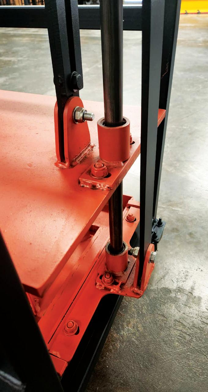 Top: The Vesconite Hilube wearresistant self-lubricating bushings are installed on the shafts on which the tamper guide system moves to compress the