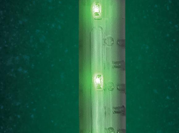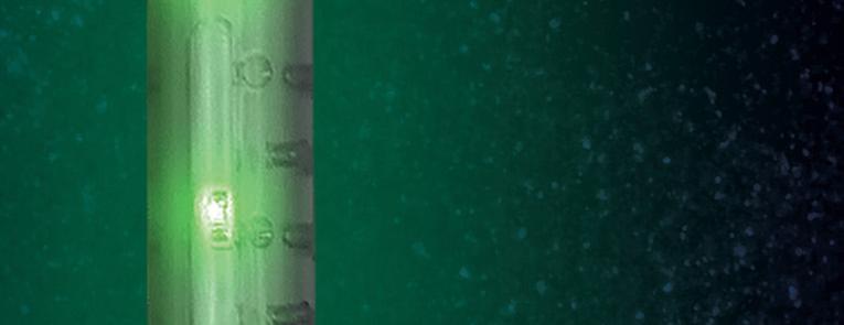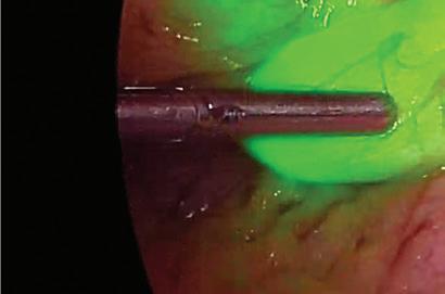 through stomach tissue and fat. This camera-visible fluorescence would make it easier to see the tube inside a patient, lessening the risk of a surgeon perforating the stomach or stapling the tube to the stomach during bariatric procedures.