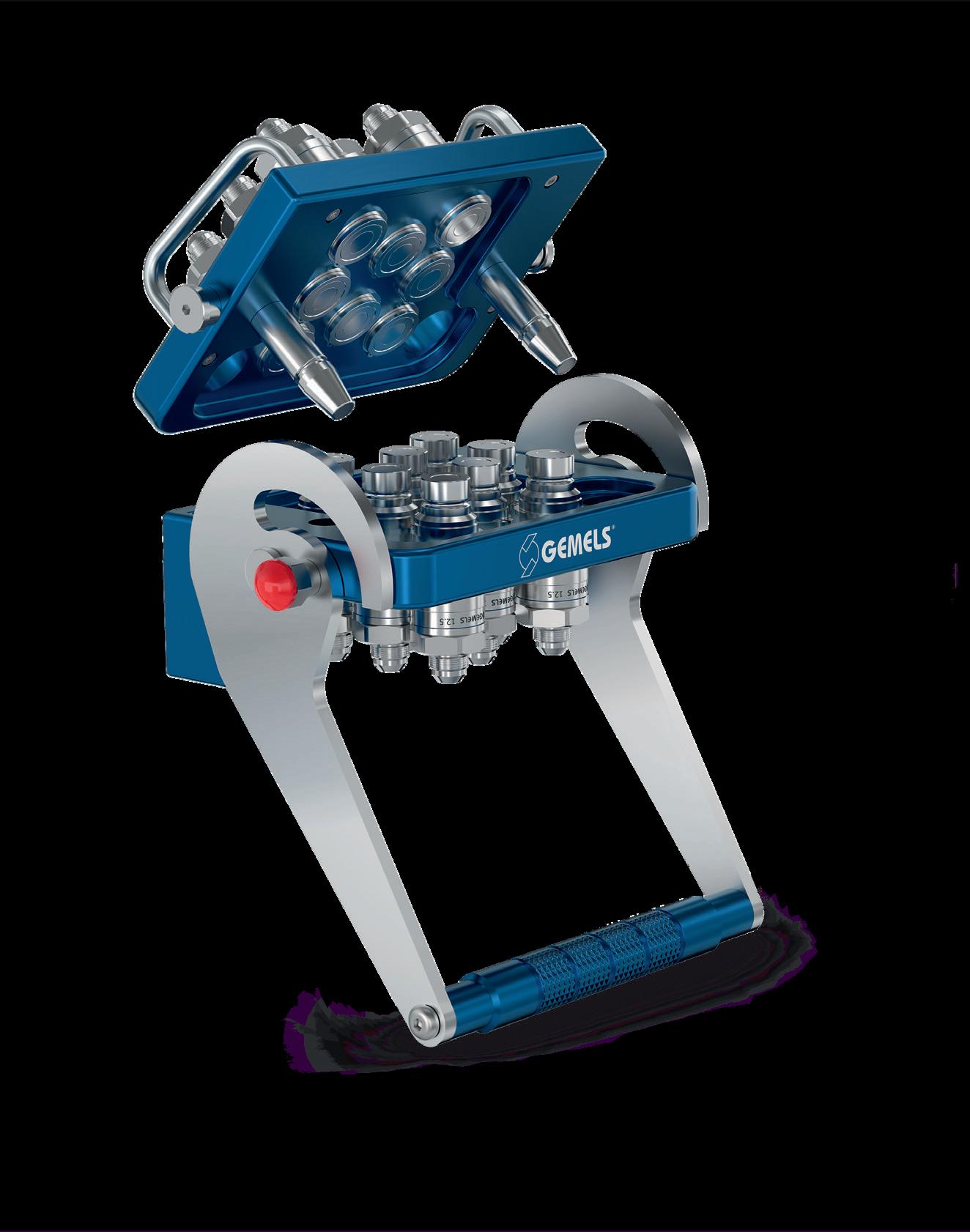 of the machine at blinding speed, delivering productivity well beyond hydraulic actuation while providing a level of safety for machine operators who no longer need to reach squishy fingers inside the machine.