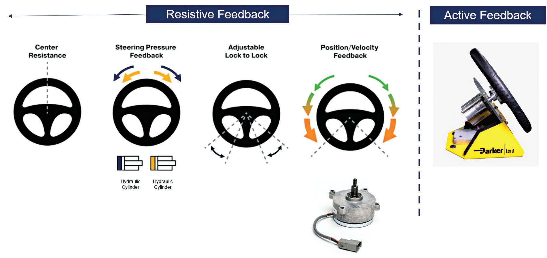 Also, with steer-by-wire, OEMs can more easily design a base steering system architecture that can be used across several machine platforms and then fine-tune each platform with its own steering performance or steering identity via software changes. This approach could significantly reduce the engineering development time for future vehicles and allow OEMs to better match steering performance with customer expectations.