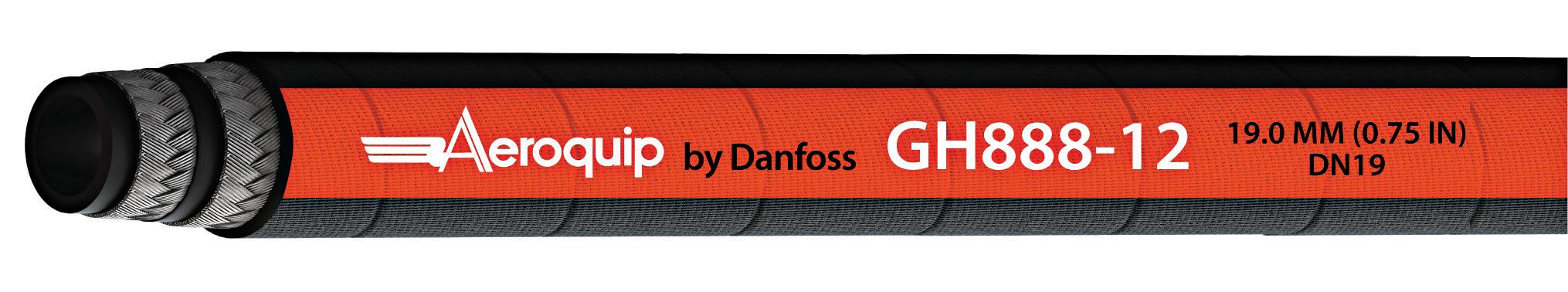 Aeroquip by Danfoss GH888 Main Pump Hose is a two-wire braided hydraulic hose designed for the main pump line on tractors. It can be used in place of four-wire spiral hose, offering greater flexibility, reduced weight, increased heat resistance, and lower total cost of ownership. GH888 Hose features a novel composite inner tube with increased stability that enhances its robustness and boosts its pressure capability. This enables the hose to operate at pressures to 350 bar for size 12 (3/4-in.) and 300 bar for size 16 (1-in.).