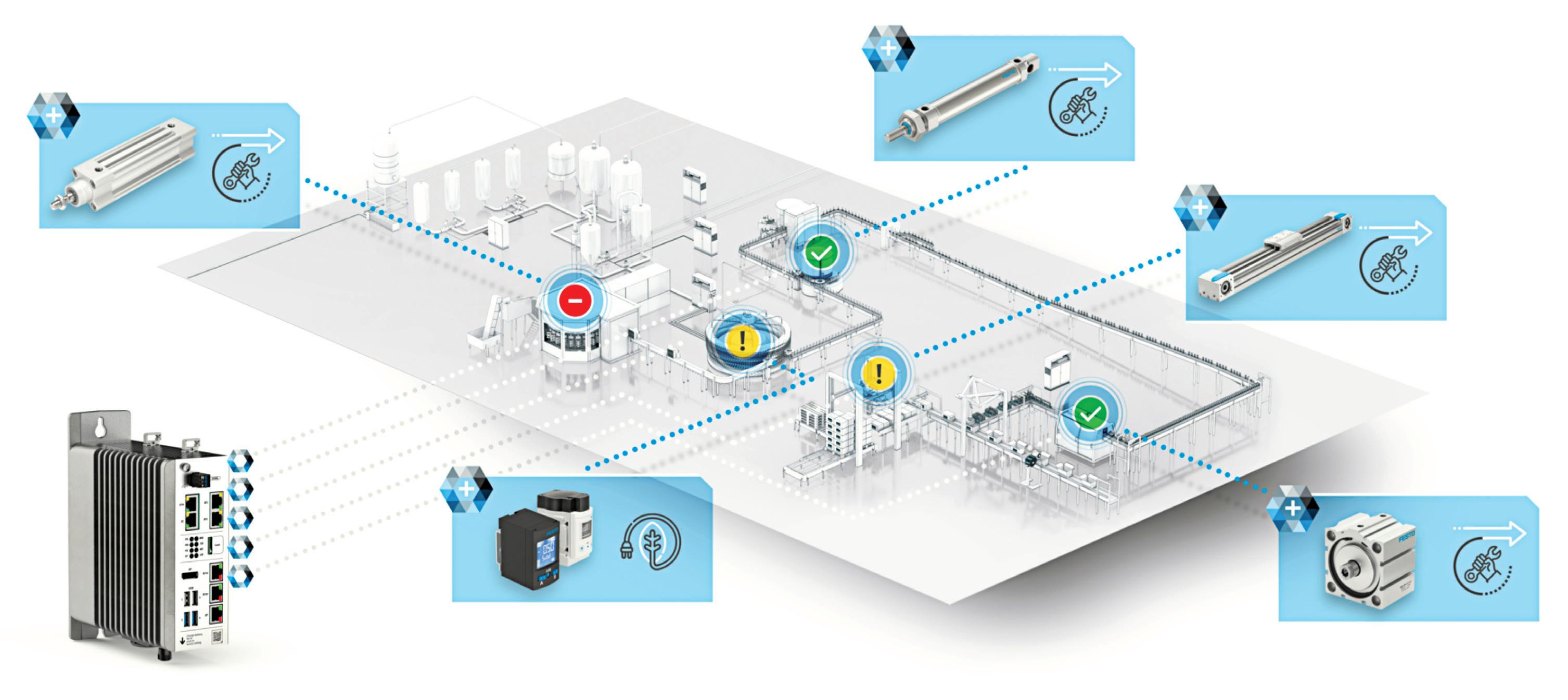 Jonas Schimmele, Business Driver Digital Business, Festo, said the app does not require additional sensors because the system leverages existing PLC signals and actuator end-position sensors already present in most machines. “No extra hardware is needed beyond the con-