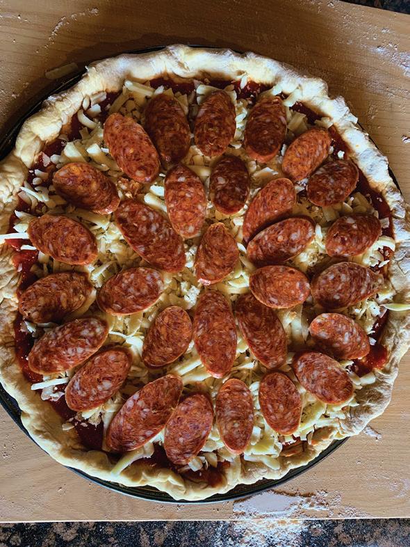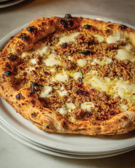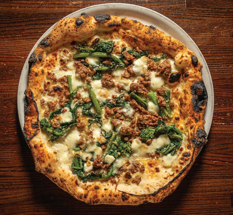 Brothers Frank and Austin Battaglia put a lot of thought into the name of the restaurant they opened on Chicago’s South Side in 2019: Stunod’s Pizzeria. “Stunod” is slang for “goofball,” Frank says, and it fits Ma Battaglia’s boys. Aside from making locally renowned pizzas based on recipes from their mother and grandmother, goofing around is the other thing they do best. Take, for example, their all-male kissing booth for Valentine’s Day, with offers like $5 for a smooch and $100 for a date. For $500, the booth’s sign stated, “We’ll call you our girlfriend.” Pony up $1,000, and they’d “beat up your ex-boyfriend.” A post about the booth racked up 596 likes on Instagram. “The handsome fellas manning the booth were my brother and I, our manager, Joe, and Drew, one of our kitchen guys,” Frank says. “Sadly, we had no takers, but a lot of folks got a good laugh and ordered a heart-shaped pizza.” Frank also appears in Stunod’s on-trend social media videos, delivering lines like, “I own Stunod’s. Of course I’m a short, hot-headed Italian named Frank.” This “just-beyourself” marketing approach resonates because Stunod’s is a “down-to-earth” gathering spot for railyard workers, cops and other blue-collar Chicagoans who come in to relax after a hard day’s work, Austin says. “I think people appreciate our authenticity,” he adds.