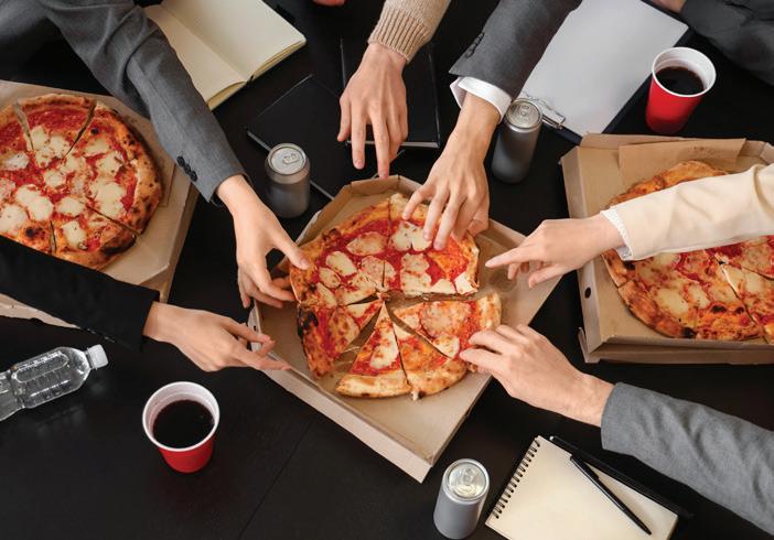 Think of your social media as if it were a menu. You wouldn’t just stick with the same menu for 20 years and expect people to keep coming back. The same is true of a social media presence. Don’t be afraid to try new things and use your imagination. “I think you should never be content with your social media,” Zapata says. “You always have to look out for whatever the new thing is.” Zapata, for example, posted a Reel in the style of the reality TV show Cops that delivered laughs and 15,000-plus views (see sidebar on page 46), while another Reel showcased the unique talents of a hungry mime placing a pizza order exclusively with gestures.