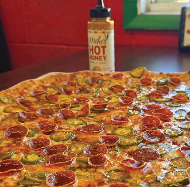 (Top to bottom) Owner Rocco Pifferetti wants customers to see that he’s always working to improve Rocco’s Pizzeria, including a recent dining-room refresh for its 20th-anniversary celebration; Rocco’s Pizzeria introduced a new pie in late January—the Spicy Cuperoni, featuring cup-and-crisp pepperoni and hot honey.