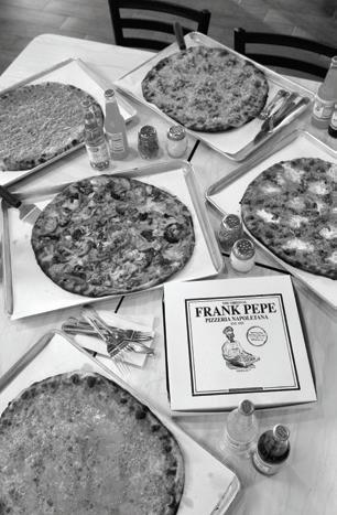 “Frank Pepe began selling his ‘tomato pies’ off a special headdress, walking through the Wooster Square market with several pies perched atop his head,” Bimonte-Kelly says. “Pepe’s continued success selling pizzas in the area convinced him and his wife to open their own restaurant.” Frank and Filomena opened their doors on Wooster Street in 1925—marking this year as the iconic pizzeria’s centennial anniversary.