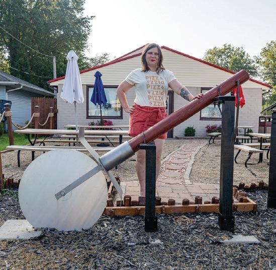 Just how many pizza slicers built for giants have you seen around the globe? Probably not many, but the one in front of The Greathouse of Pizza (GHOP), located in Casey, Illinois, can outslice them all and will likely end up in the Guinness World Records. Owner Trent Groothuis filed an application in 2020 to get his 8’-long wheel pizza cutter certified by Guinness. “We actually heard back, and we do have the world’s largest slicer, but we need to get it professionally measured and send in a lot of paperwork to make it official,” Groothuis says. With a blade circumference of 31½” and a handle length of 61½”, the slicer sits in front of GHOP’s brick-andmortar store, beckoning hungry locals and curious travelers alike to try out the family-owned pizzeria’s Chicago-style fare. GHOP also boasts nearly 20,000 followers on Facebook, a remarkably high number for a single-location independent pizza restaurant.