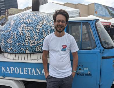It’s not easy to make history in a culinary tradition that’s already thousands of years old. But Alessio Lacco, co-owner of the Atlanta Pizza Truck in Atlanta, did just that when his mobile operation became the first to receive certification from the AVPN (Associazione Verace Pizza Napoletana) in December. Lacco and his wife, Sofia Arango, sell their authentic Neapolitan pies out of a blue 1982 Ape Car, a three-wheeler mounted with a wood-burning oven. Before moving to the U.S., Lacco trained under master pizzaiolo Gaetano Esposito in Naples and studied with the AVPN to learn the rules of Neapolitan pizza. “I knew that, on the other side of the ocean, I would need an endorsement like the one offered by the AVPN brand—and so it was,” Lacco recalls. He opened his first AVPN-certified shop in Dallas in 2013 and launched the Atlanta Pizza Truck in late 2020. “Americans are rightly concerned with quality and compliance with the rules,” he notes. “If you come to their house to offer an iconic product like Neapolitan pizza, they want it to follow all the [requirements].”