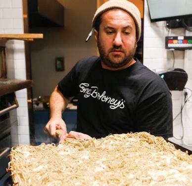 Will Ferrell’s title character in Elf may have discovered “the world’s best cup of coffee,” but he never tried the world’s greatest food—pizza. If only he could have made a trip to Tony Boloney’s, with five locations in New Jersey, where owner Mike Hauke created a Christmas-themed pie with Buddy the Elf in mind. In a December cross-promotion with Slice, the online ordering platform for independent pizzerias, Hauke built the North Pole Pizza on a crust of chocolateinfused spaghetti and mozzarella, then added a sauce made with melted chocolate, maple syrup, and peanut butter and jelly. For the toppings, Hauke piled it high with treats like crushed candy canes, mini-marshmallows, M&Ms, chocolate chips, candy sprinkles and Lucky Charms. The pizza could only be ordered for a limited time through Slice, although it was also made available for shipping around the country by Goldbelly.