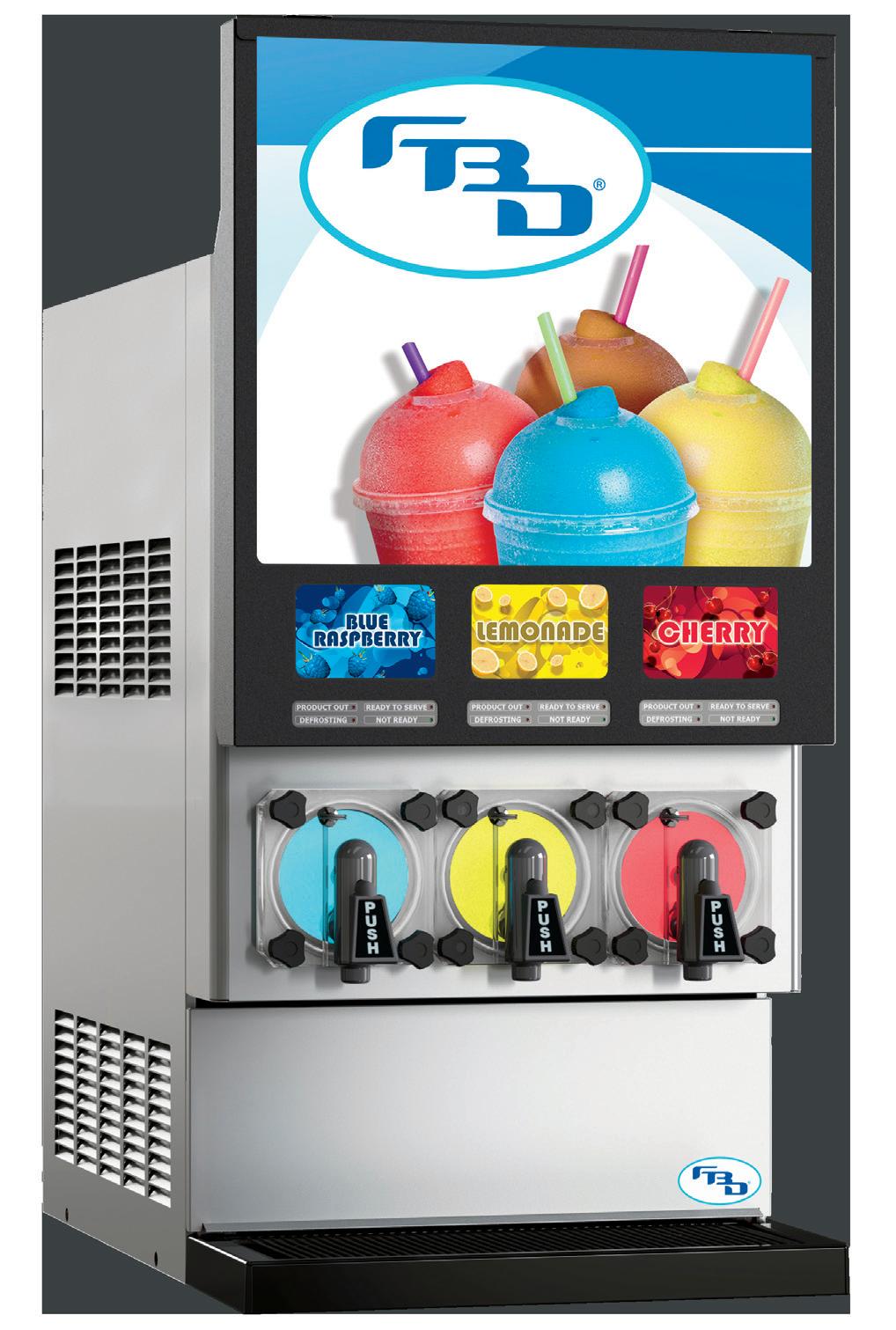 FBD’s machines allow for frozen beverage fl avors to be changed at any time to meet changing consumer demand and market trends. In addition to o ering a wide selection of flavors and combinations, FBD’s equipment has self-service capabilities that enhance the in-store experience by allowing customers to cra their unique frozen beverage. The machines are designed for easy cleaning and maintenance, ensuring maximum uptime and reliability without extensive labor. Unlike others requiring frequent disassembly, FBD machines o er hassle-free cleaning, requiring only annual maintenance. With FBD equipment, the sealed interior environment means sta only needs to clean the machine once a year, eliminating costs from daily labor and ensuring consistent product quality.