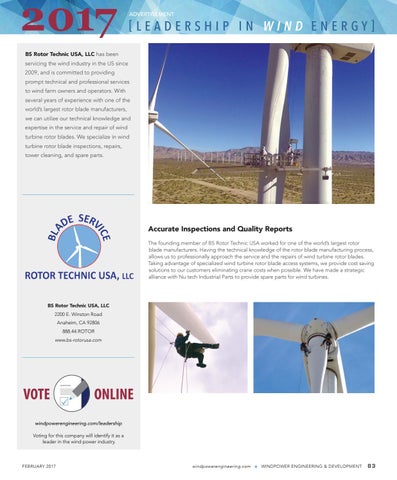 windpowerengineering.com/leadership Voting for this company will identify it as a leader in the wind power industry.