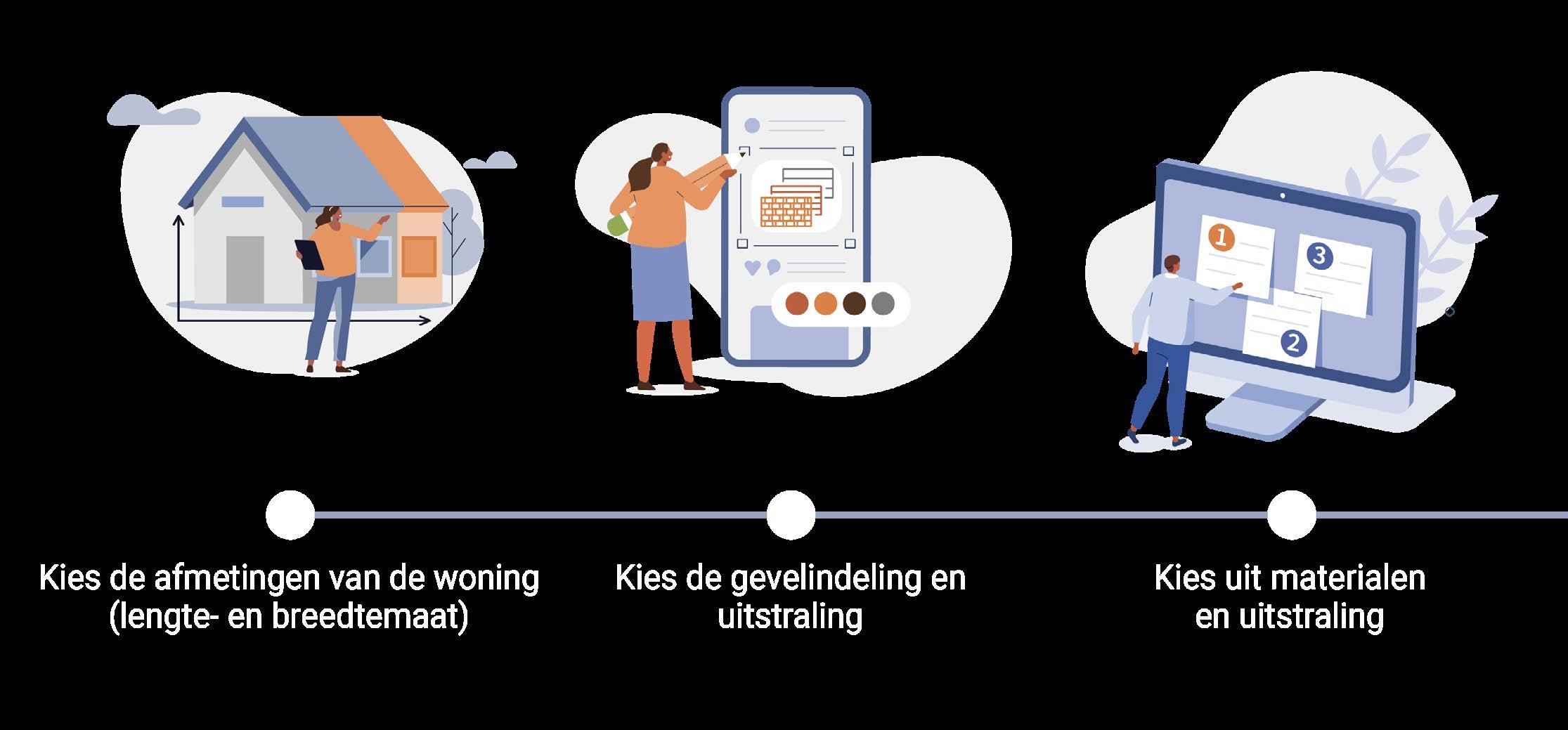 iBuild biedt zowel voor ontwikkelaars als kopers een variatie aan mogelijkheden. Er zijn verschillende breedte- en lengtematen beschikbaar, evenals diverse materialen voor de gevel en het dak. De configuratie omvat ook de keuze voor basisinstallaties en optionele installaties. Daarnaast kunnen extra opties worden toegevoegd, zoals een tuitgevel of een Frans balkon. Met iBuild zijn de configuratiemogelijkheden vrijwel onbeperkt, waardoor elke woning kan worden aangepast aan de specifieke voorkeuren van de klant.
