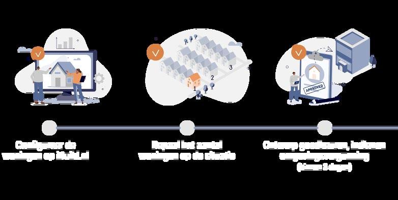 iBuild hanteert een unieke aanpak in de bouwsector. Onze woningen worden van meet af aan hoogwaardig ontworpen, volledig geëngineerd en grondig getest. Met behulp van onze configurator heeft u de mogelijkheid om de droomwoning voor uw eindgebruiker tot in detail samen te stellen en te personaliseren. Nadat de woningconfiguratie is voltooid, volstaat één druk op de knop om de omgevingsvergunning aan te vragen. Het vervolgproces wordt dan automatisch in gang gezet.