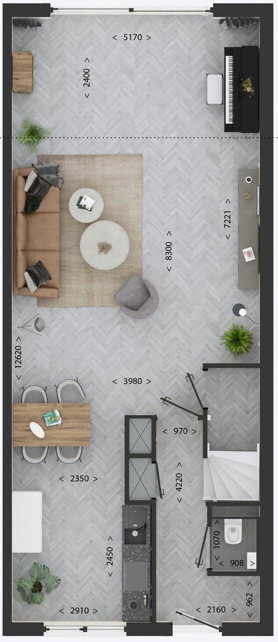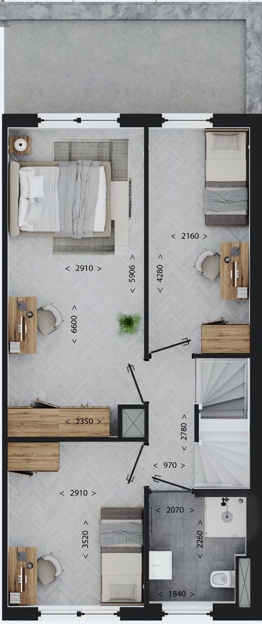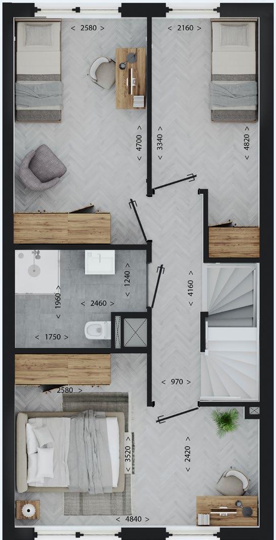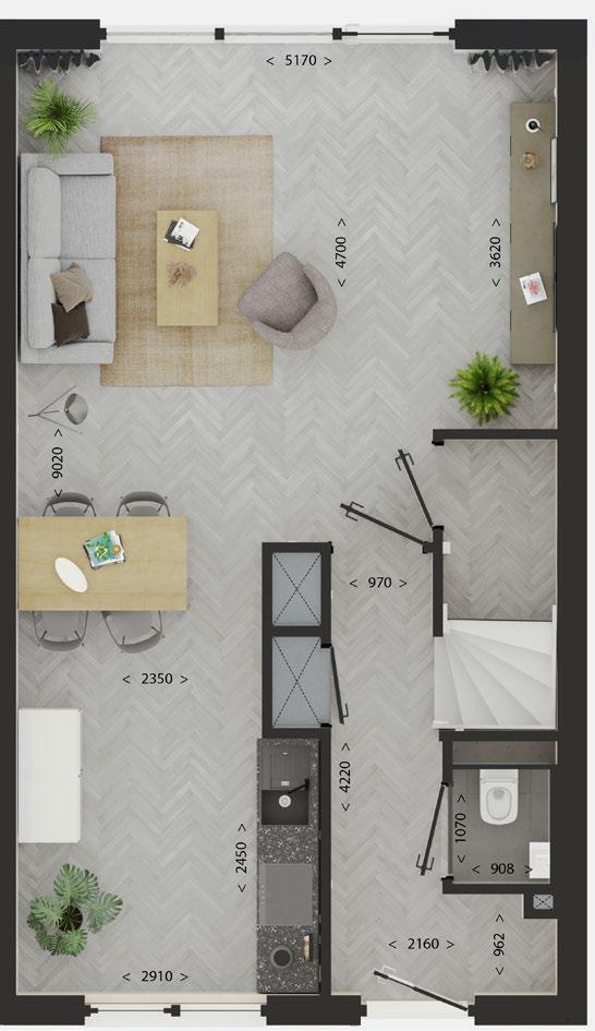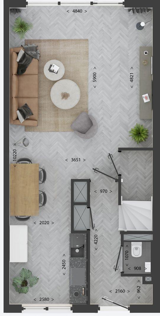 De plattegronden van onze woningen zijn ontworpen met als doel het hoogst mogelijke leefcomfort voor de eindgebruiker te bieden. De schacht en meterkast zijn centraal geplaatst om de installaties op een gestandaardiseerde en geprefabriceerde wijze aan te kunnen brengen. In de afbeeldingen hiernaast vindt u de plattegronden van de breedtevariant 5100 in combinatie met de lengtevariant 9800 en 11000. Deze plattegronden geven u een goed beeld van de opbouw van de woning.