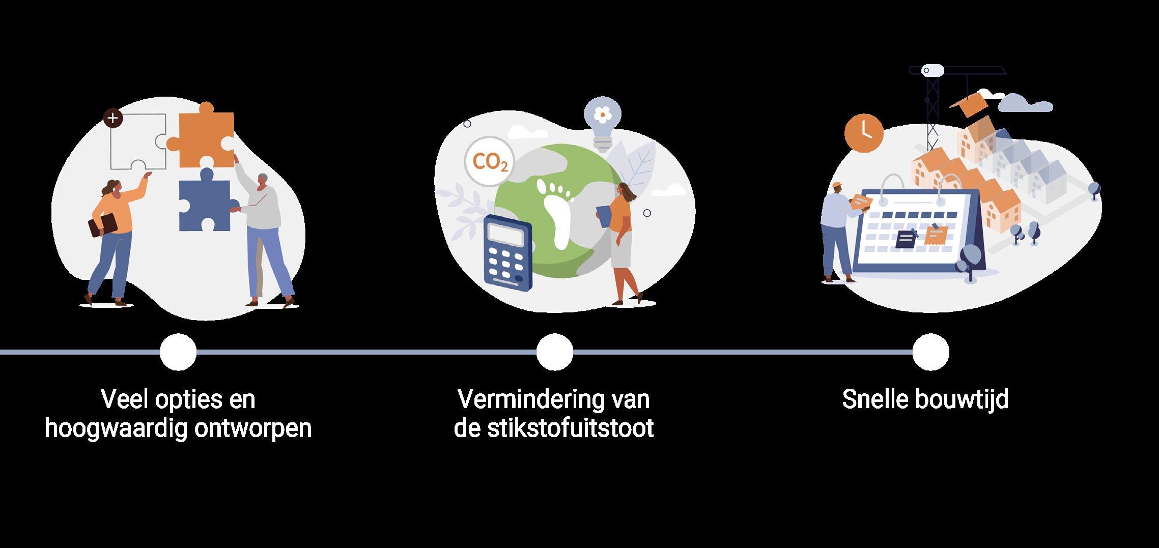 Op de bouwlocatie hoeven de woningen alleen nog maar geassembleerd te worden, wat aanzienlijke tijdwinst oplevert in het bouwproces.