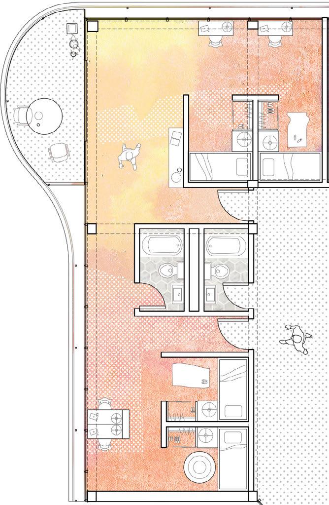 3. Interior renderings showing the speculative living condition of the bamboo strucuttre