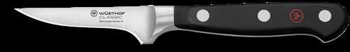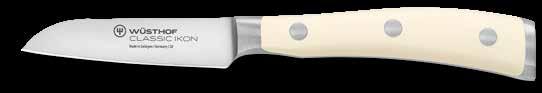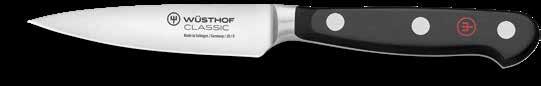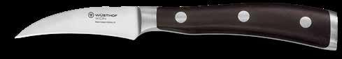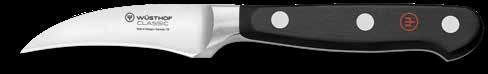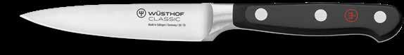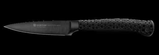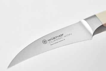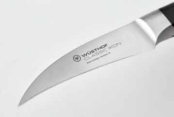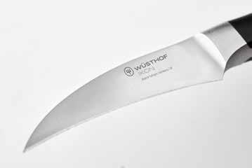 Réalisé en utilisant le processus d‘affûtage spécial de WÜSTHOF, cela permet de réaliser des mouvements durables, propres et précis. La pointe est utilisée pour de fines incisions. La courbe légère convient pour émincer des herbes. Les légumes tendres sont découpés en utilisant l‘avant de la lame. Les aliments durs sont découpés sans effort en utilisant l’arrière où le transfert du poids est plus important, ce qui réduit vos efforts.