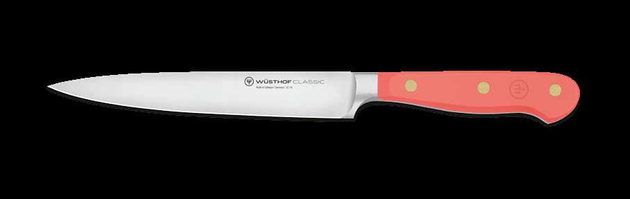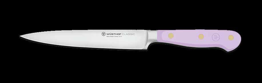 La lame est forgée à partir d‘une pièce d‘acier WÜSTHOF et durcie à 58 Rockwell. Cela rend nos couteaux extrêmement tranchants, robustes, durables et faciles à réaffûter.